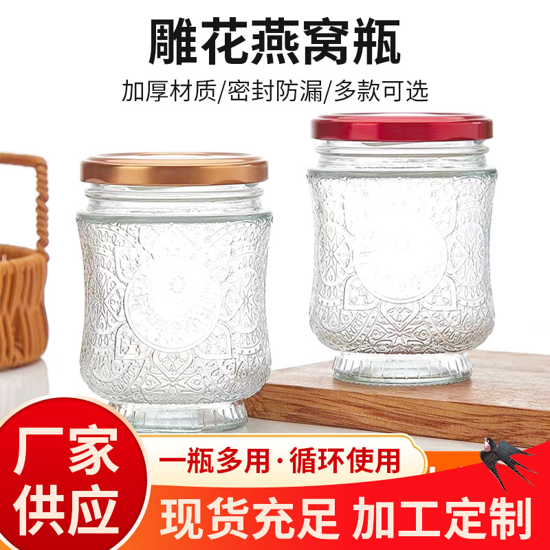 家用燕窝分装玻璃瓶鱼胶酒瓶瓶子罐头桃胶储存带罩密封耐高温