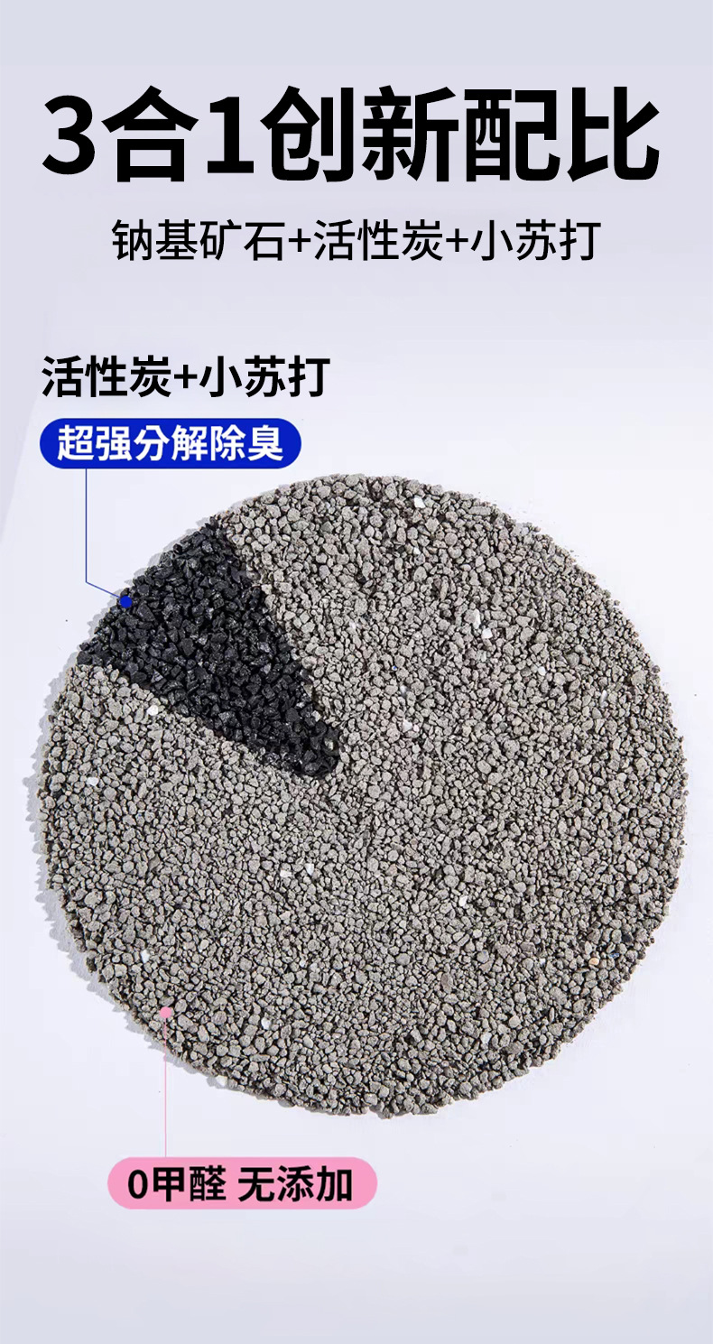 天然ナトリウム系ミネラルサンド、固まりやすい、消臭、無塵、粉砕ベントナイト猫砂、消臭混合猫砂卸売