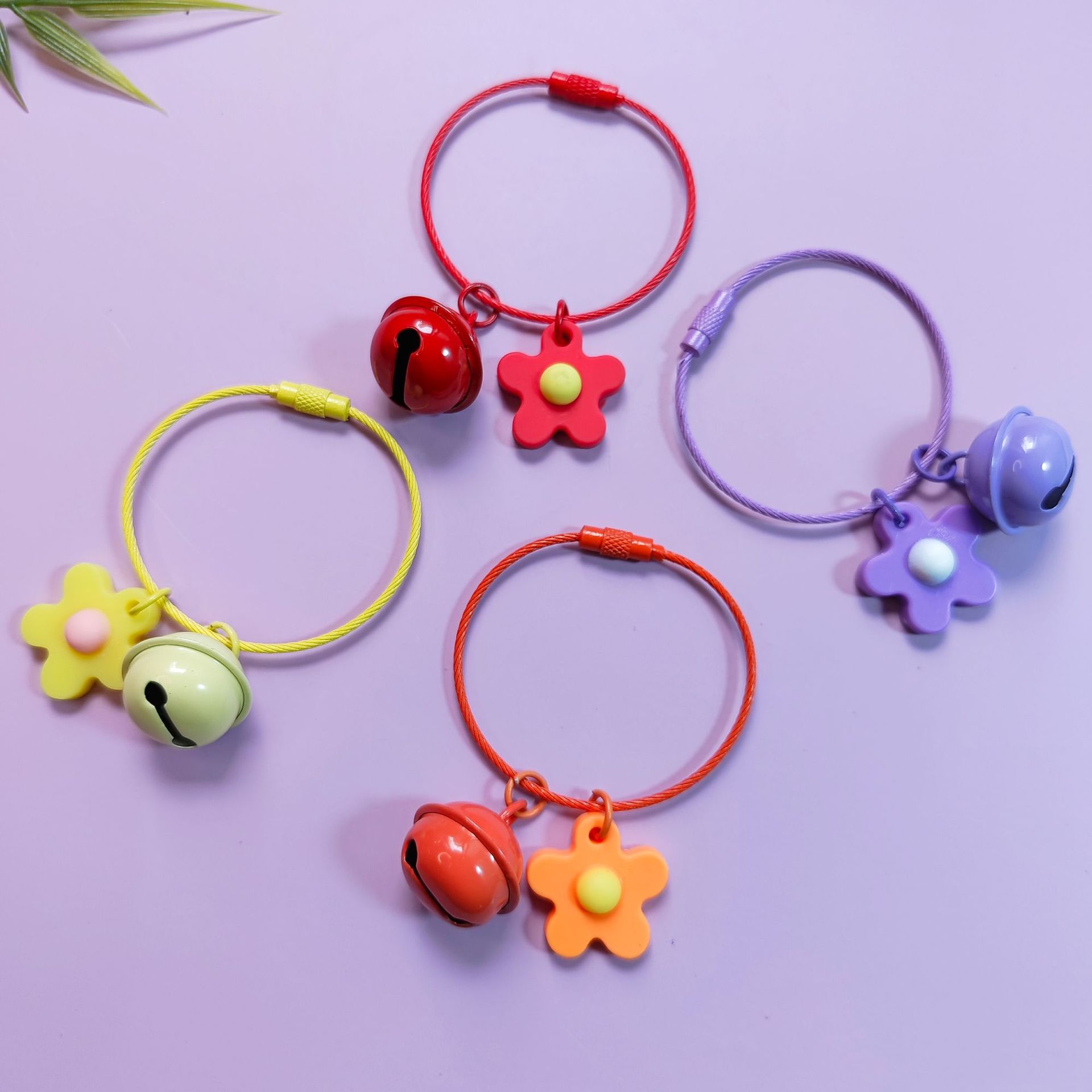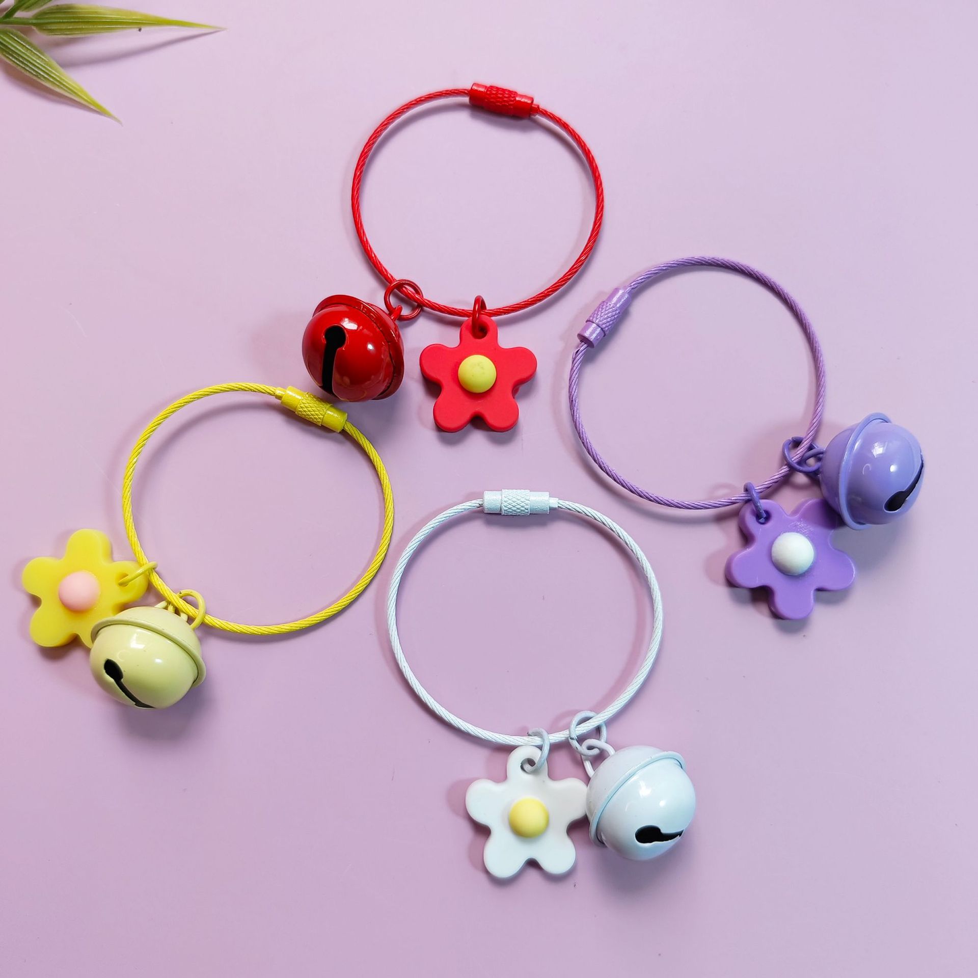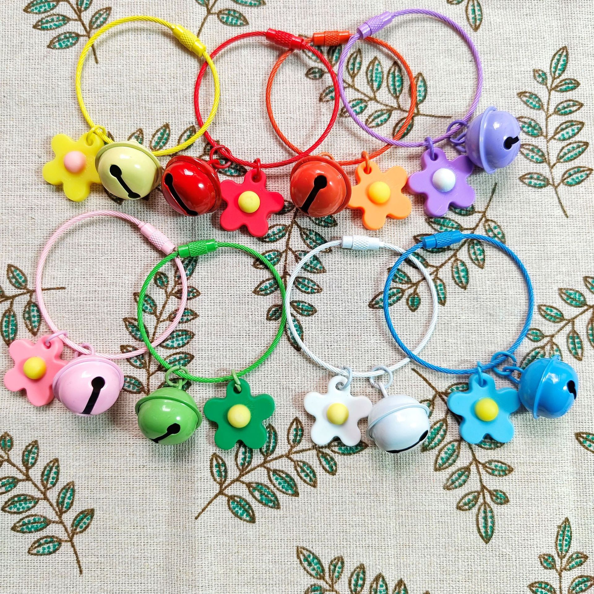 カラーワイヤーリング花ベルdiyキャンディー系小花ペンダントキーホルダーアクセサリーかわいいかばんアクセサリー