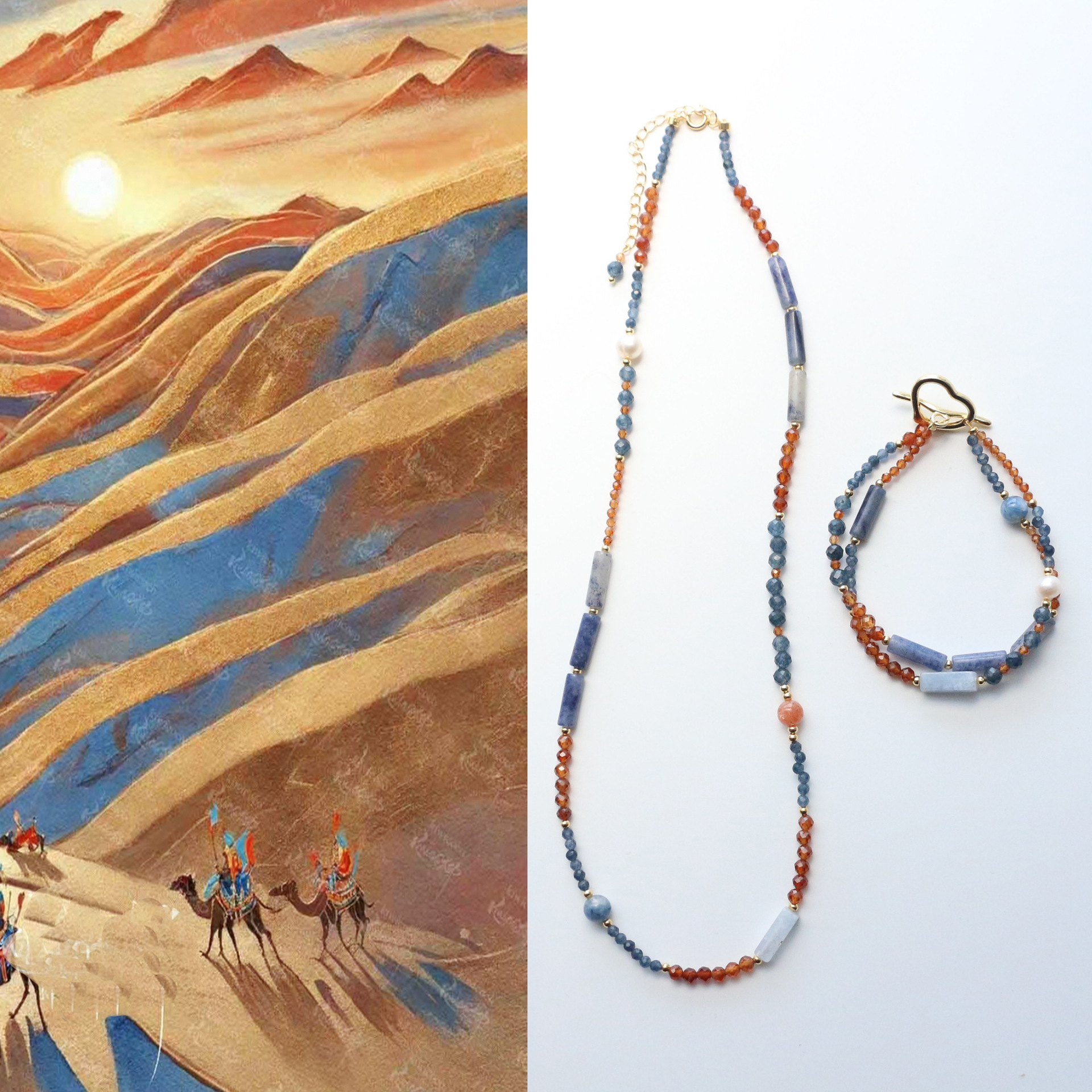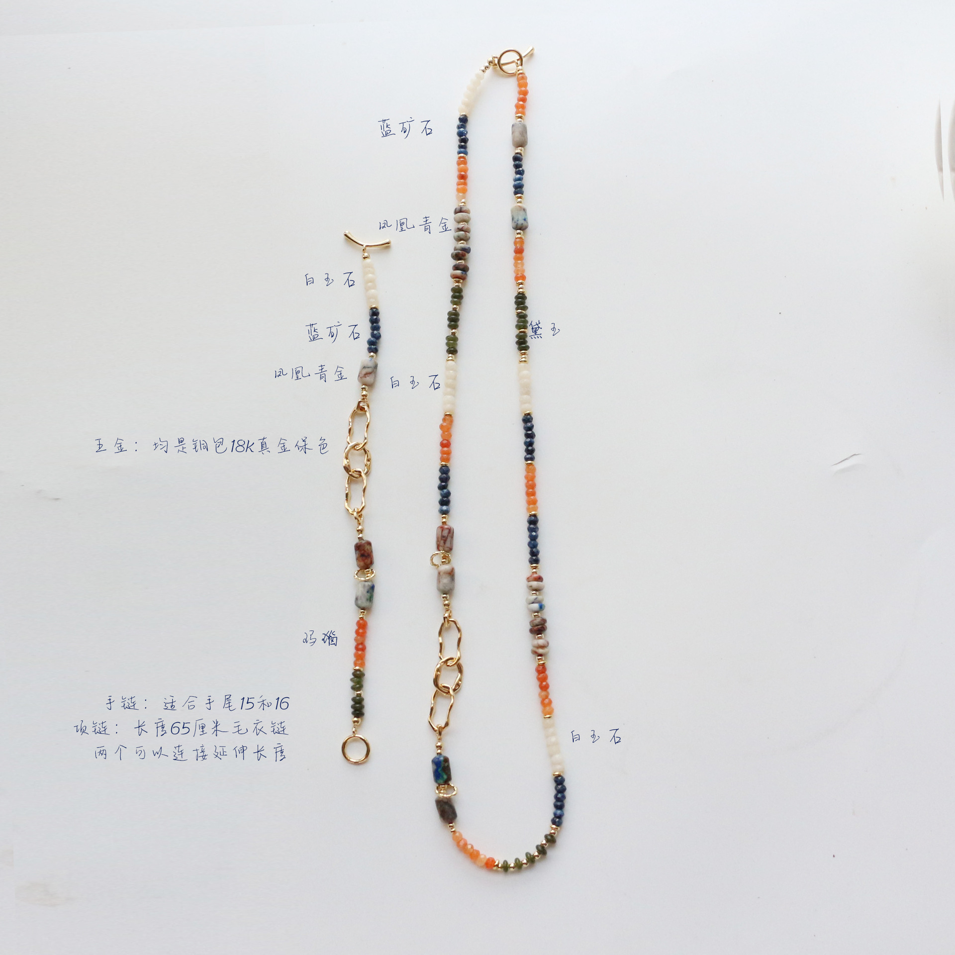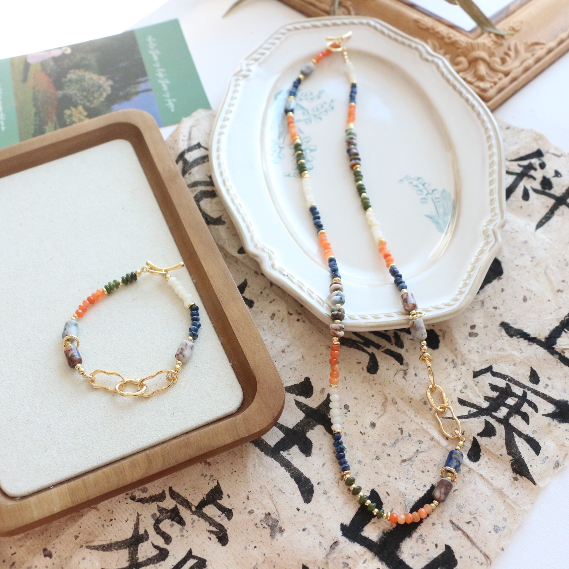 敦煌風復古新中国式天然石ブレスレットネックレスセーターチェーン