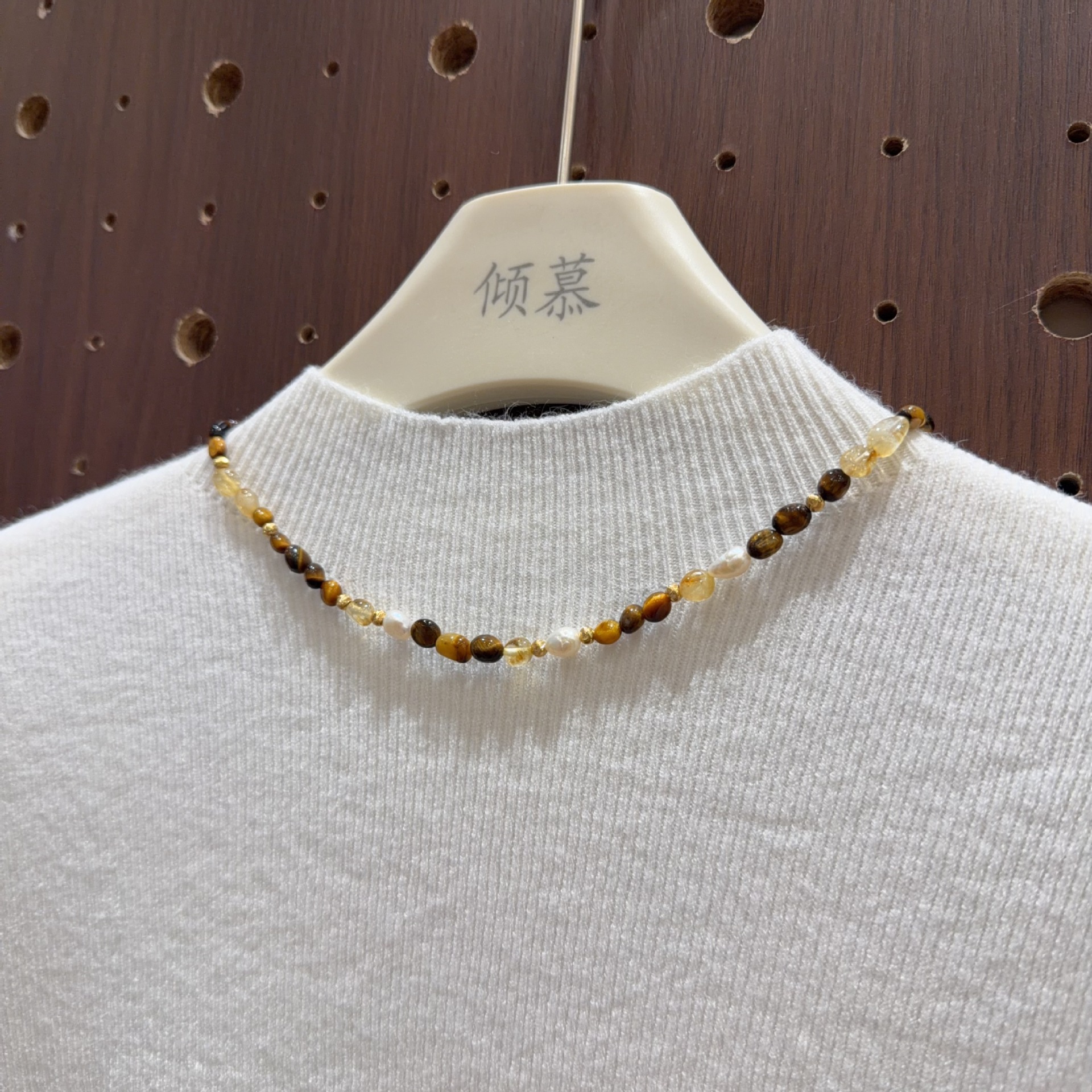 新中国風の国風のネックレスの小さい大衆の多色の虎の目の石の黄水晶の真珠の模様の創意の短いネックレスの夏の新型