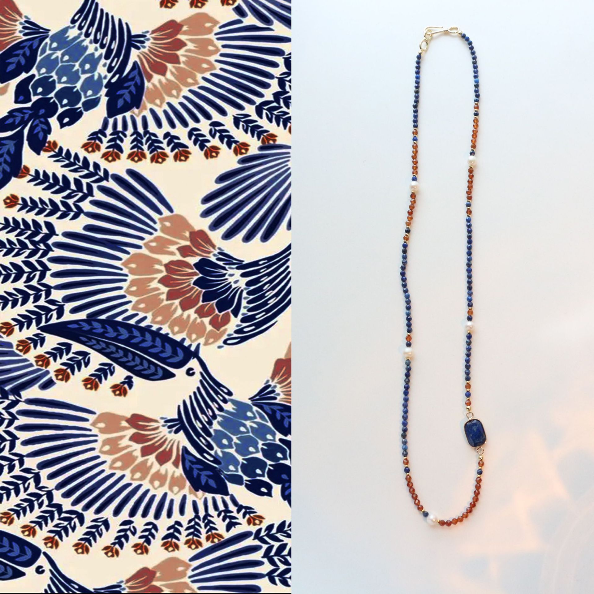 新しい中国風の青金石60cmロングセーターチェーン、レトロネックレス、女性用敦煌風ライトラグジュアリー気質ネックアクセサリー