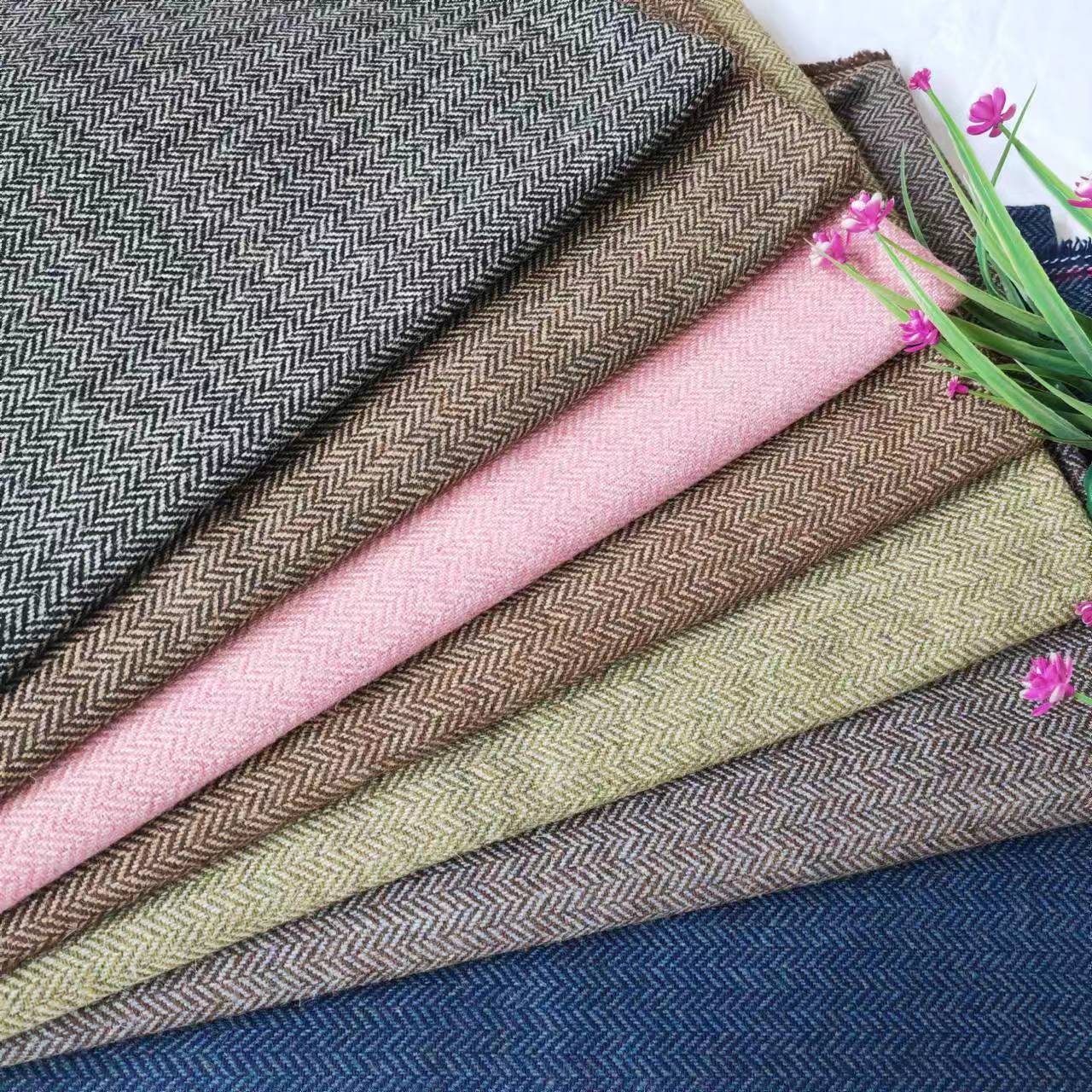 现货人字呢面料人字纹鱼骨纹毛呢面料秋冬外套裙装鞋帽箱包布料
