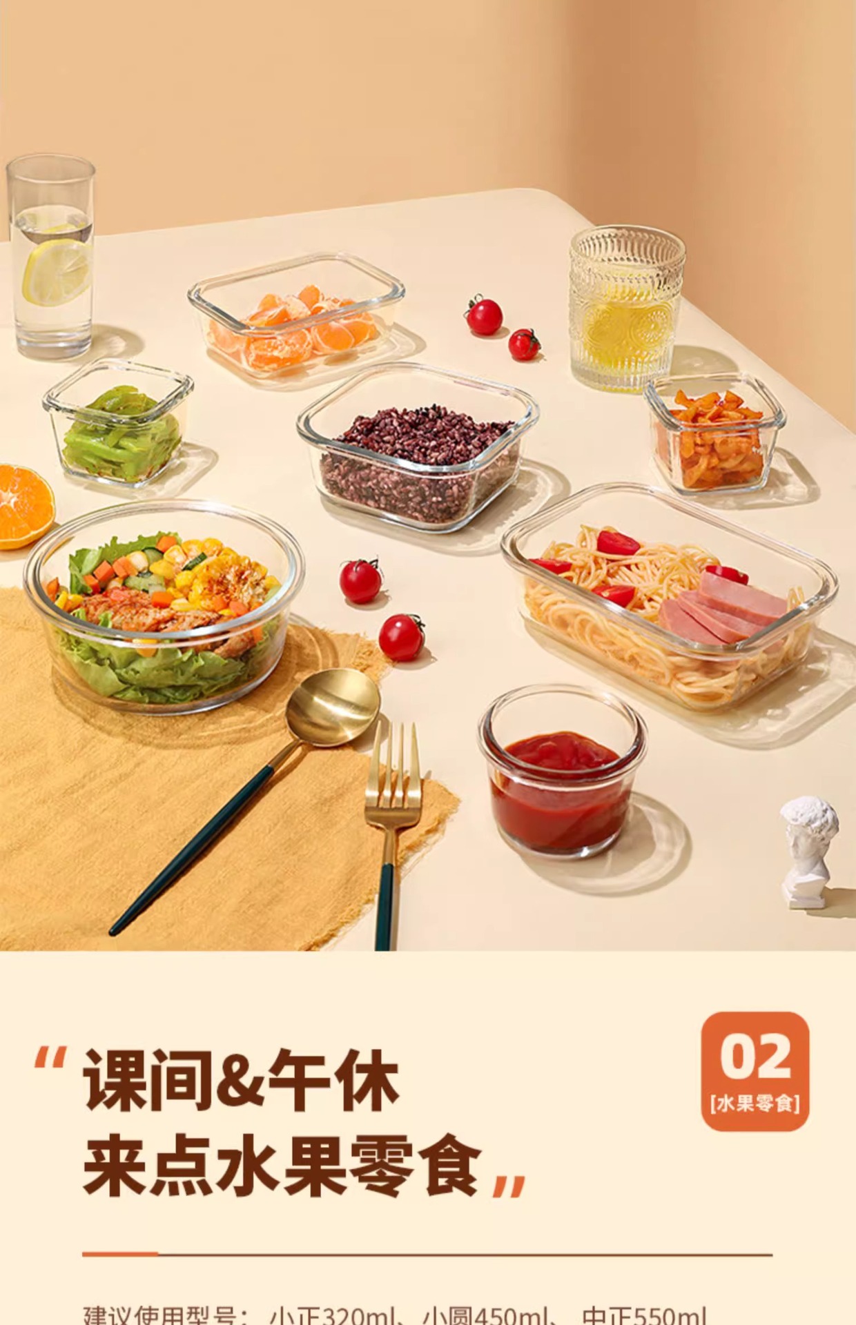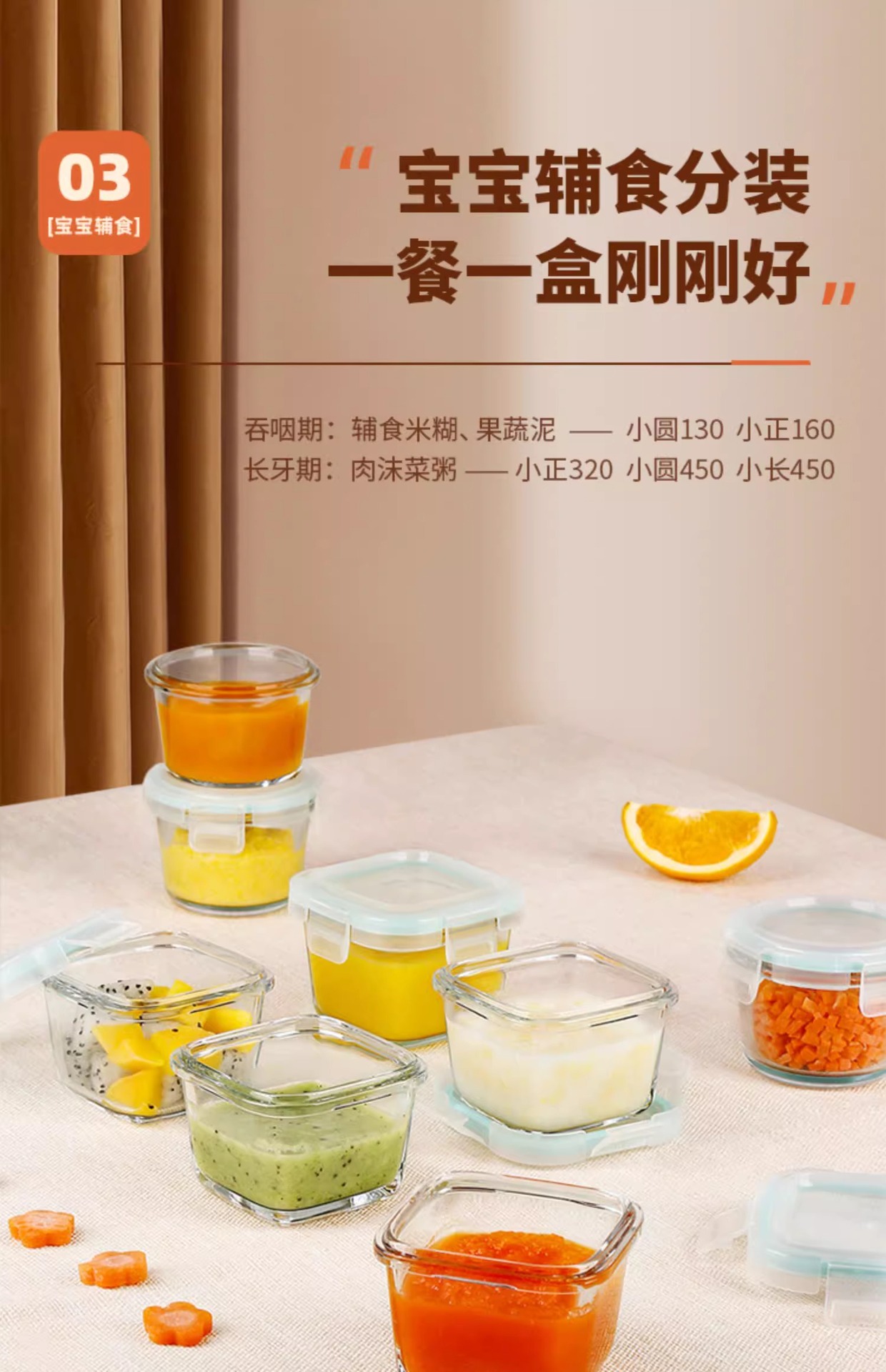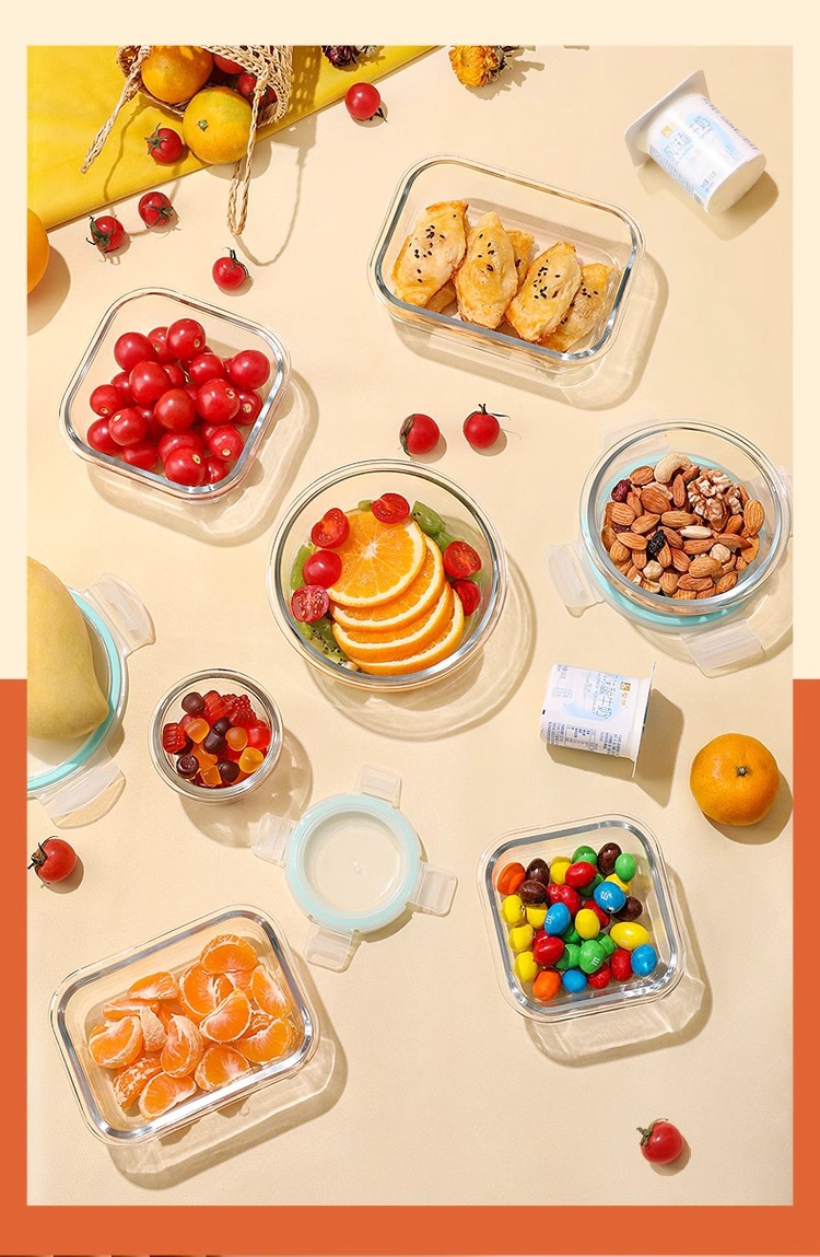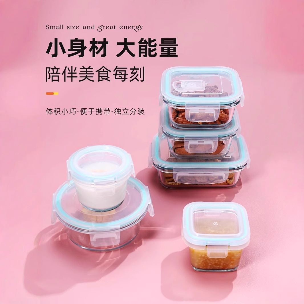 給餌ボウル、子供用ガラス弁当箱、高温耐性丸型電子レンジ保存箱、角型栄養補助食品ボックス、ベビーボウル