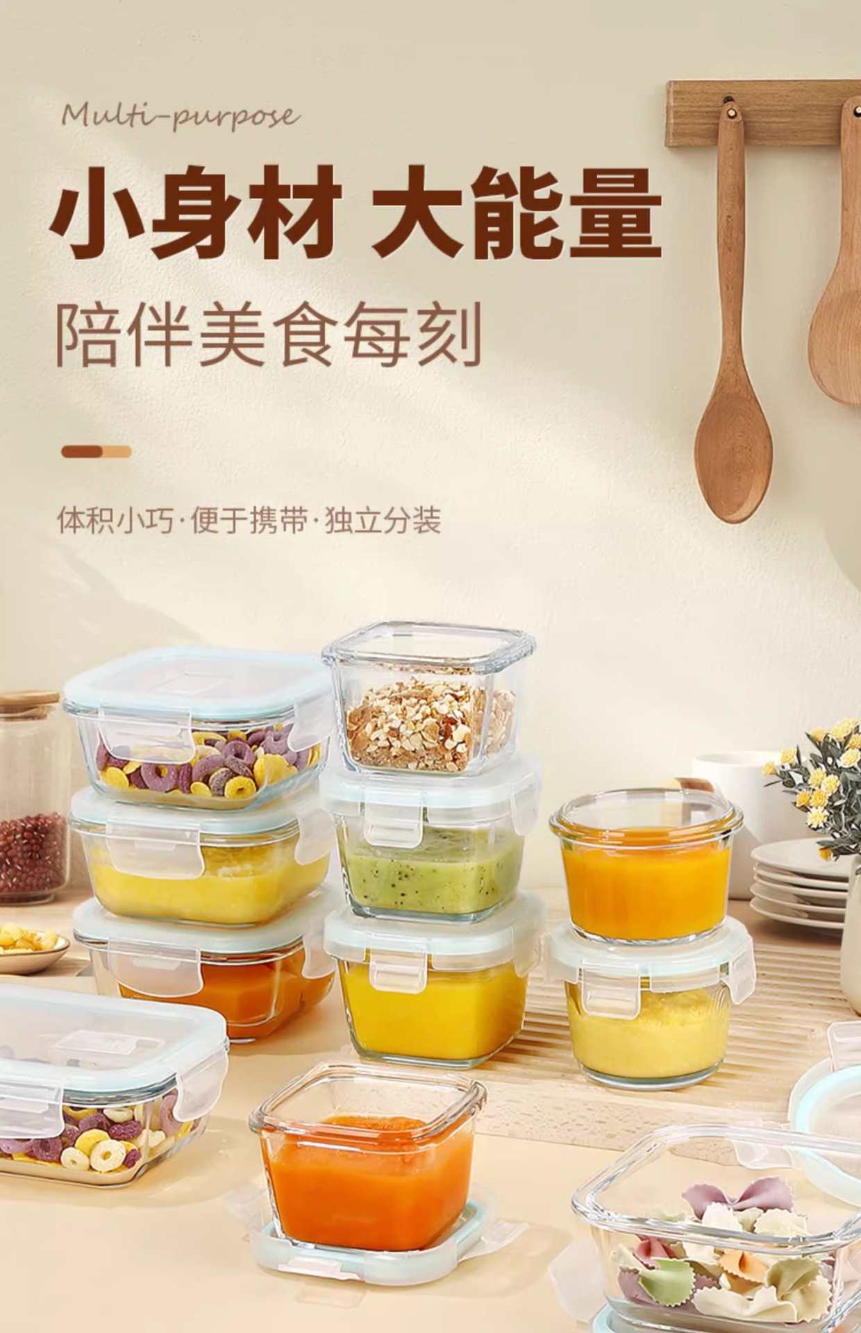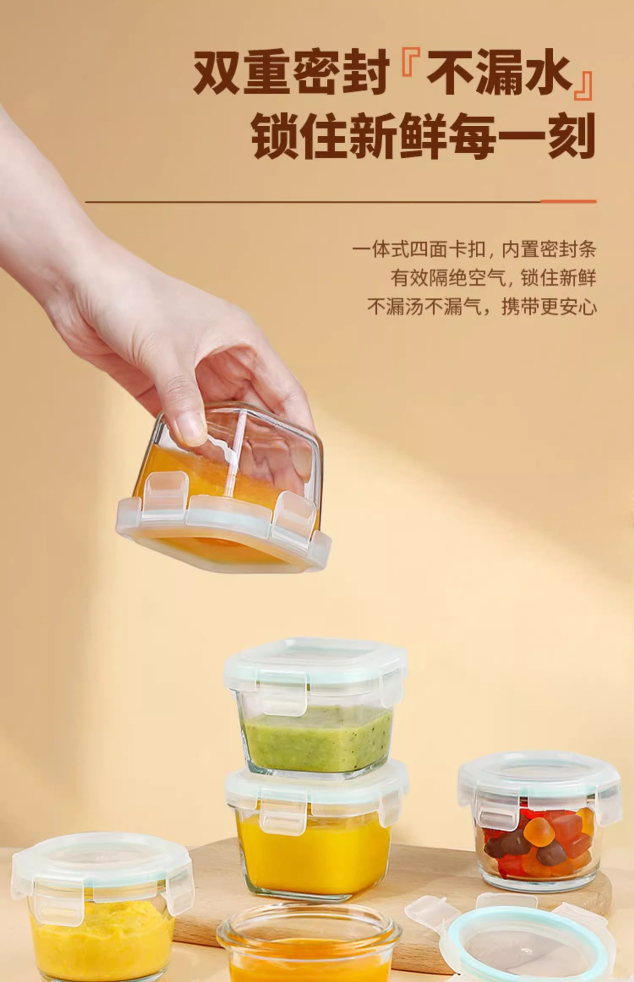 玻璃密封保鲜儿童碗可蒸煮蛋羹碗婴儿专用玻璃辅食碗带刻度宝宝碗