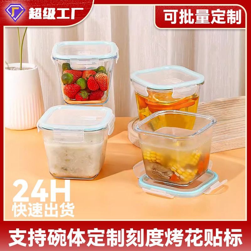 ガラススープ碗家庭用密封正方形電子レンジ加熱専用碗サラリーマン成人弁当箱蓋付き鮮度保持
