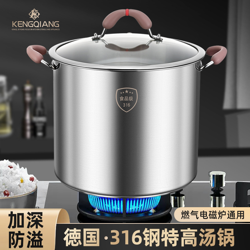 铿锵汤锅316不锈钢家用煮锅食品级加厚电磁炉炖汤锅熬粥锅蒸煮锅
