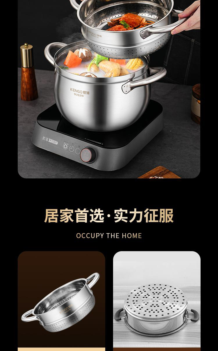 ドイツステンレススープ鍋食品級316増厚電磁炉専用スープ鍋蒸煮一体鍋煮込み鍋