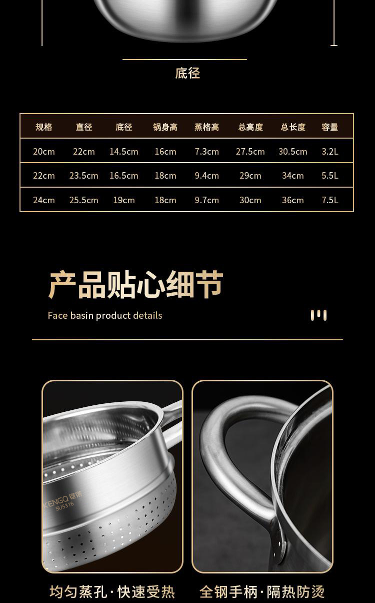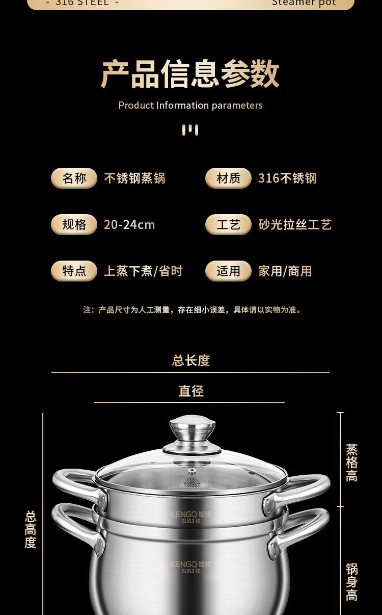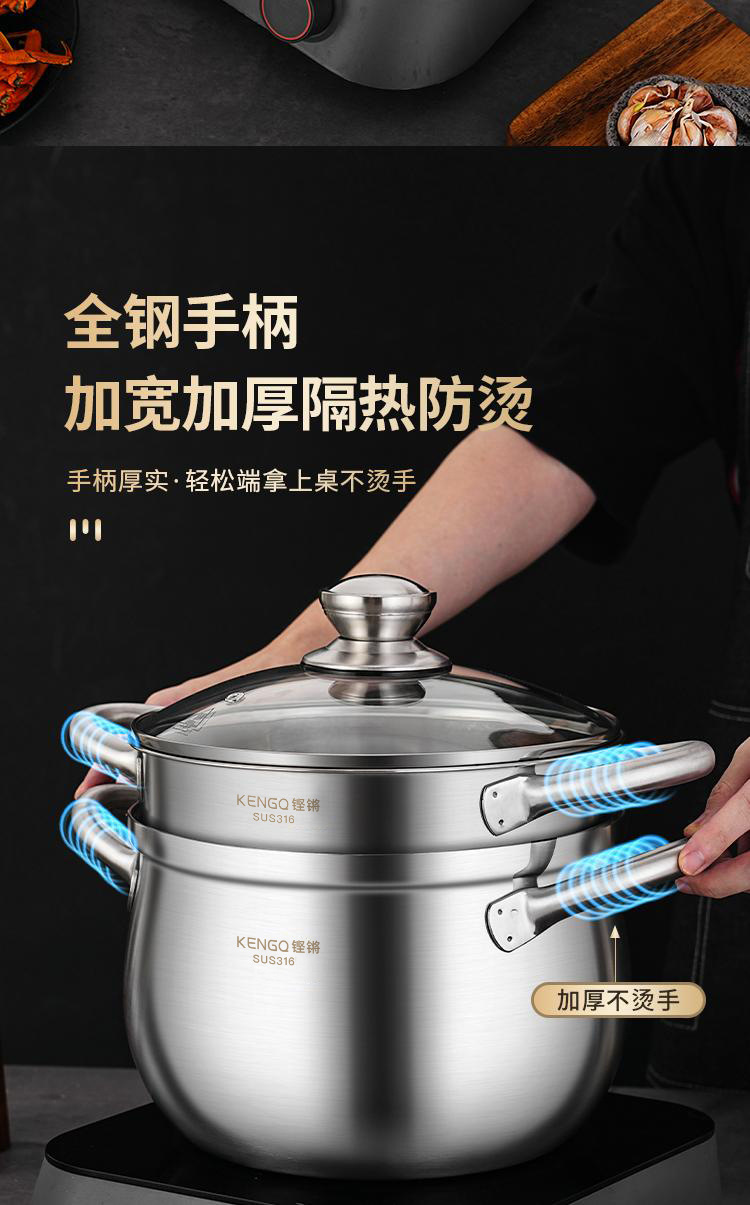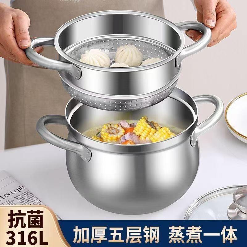 316ステンレス蒸し器家庭用厚い蒸煮一体二重蒸し器食品級電磁炉スープ鍋蒸し器付き