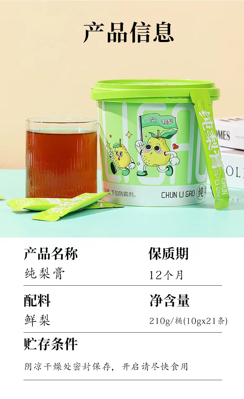 纯梨膏210g桶装秋梨膏古法熬制砀山梨便携桶装秋梨膏现货批发代发