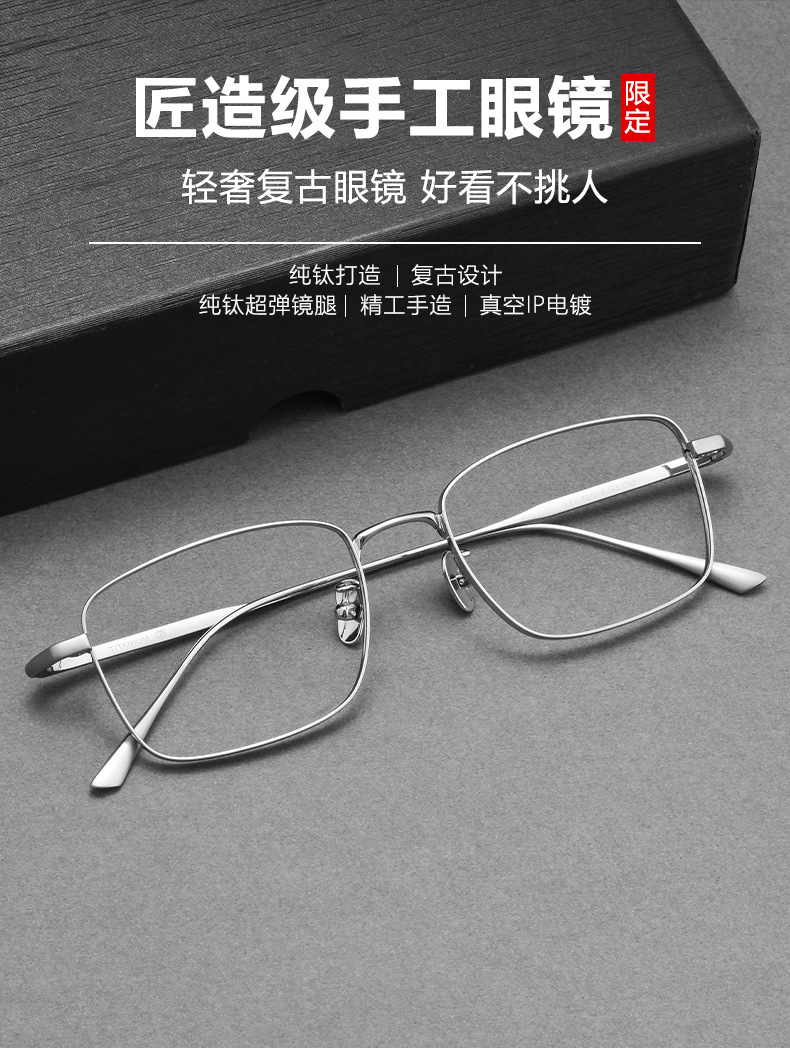 超軽量純チタン近視眼鏡LEXビジネス超軽量銀糸鏡枠チタンフレームレトロ角枠眼鏡フレーム鏡枠男