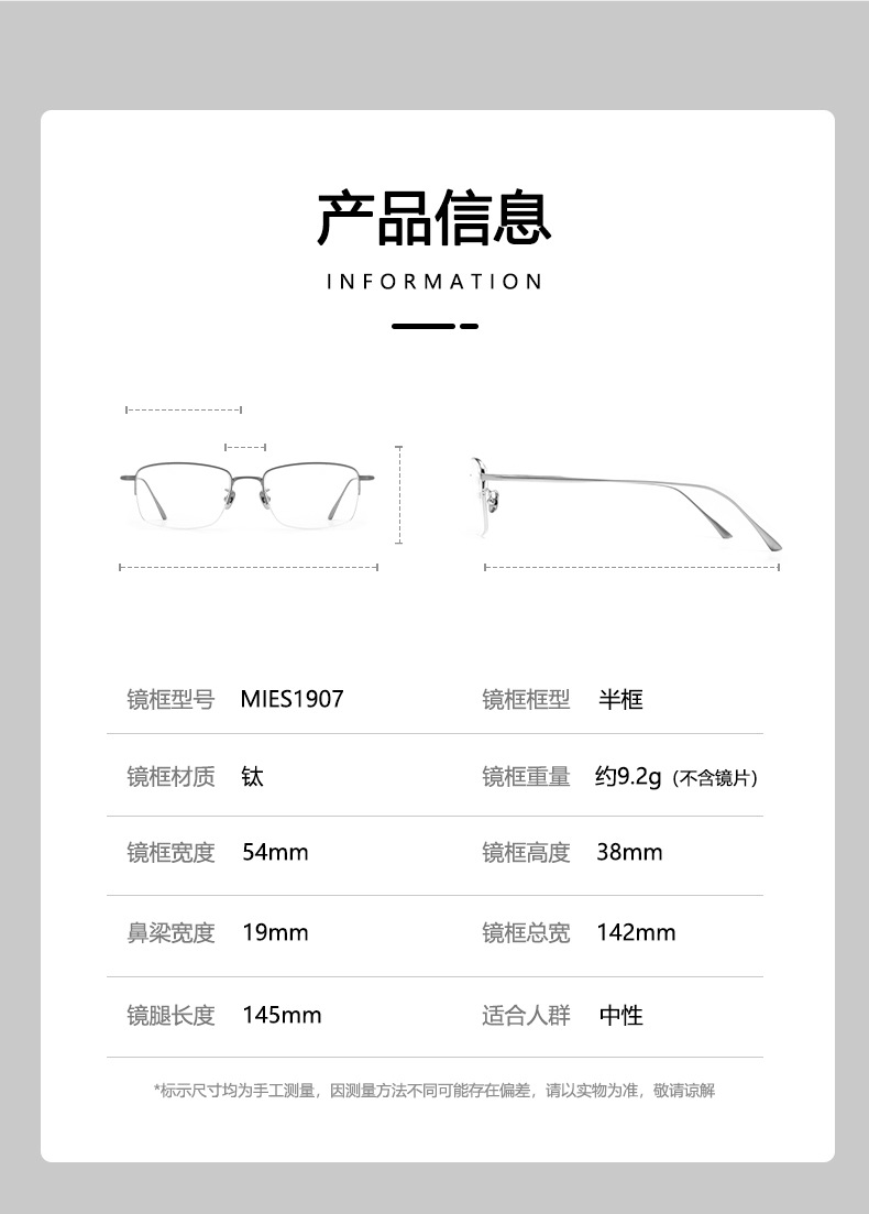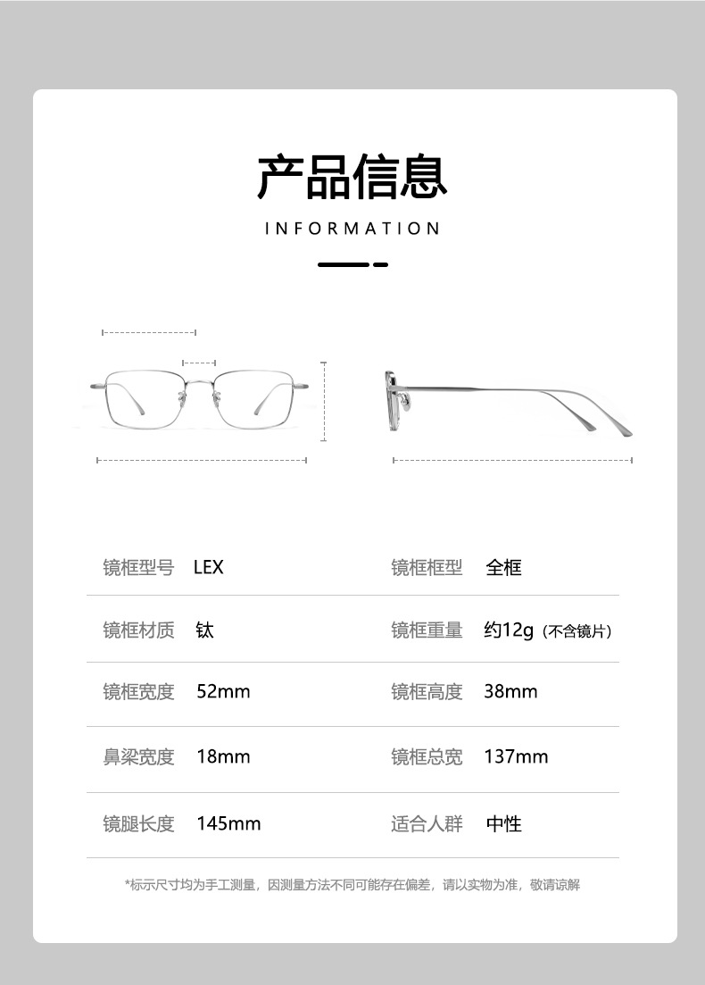 丹阳超轻纯钛近视眼镜框架商务防蓝光商务钛架复古方框男1908LEX