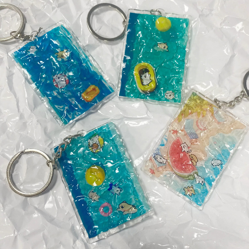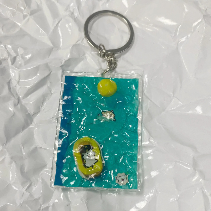 厳選された海底子犬両面キーホルダー水の波紋シンプル透明高価値アクリル装飾ペンダント