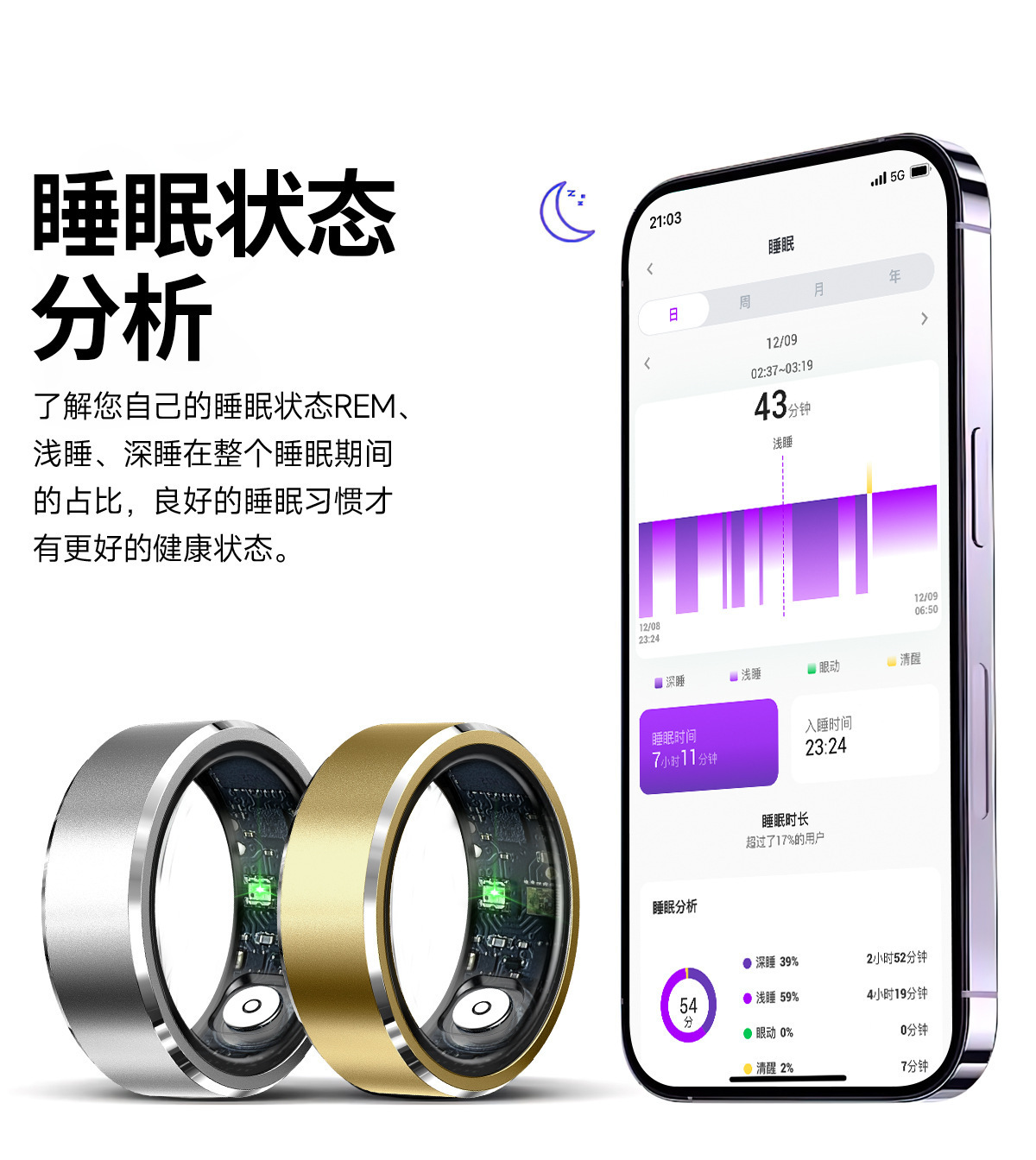 【クロスボーダー専用】r 5知能運動健康心拍数血酸素睡眠データ監視アクセサリーカップル指輪