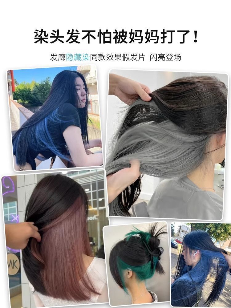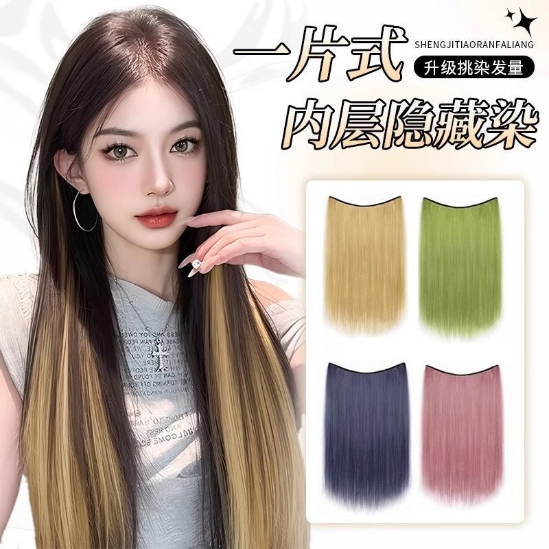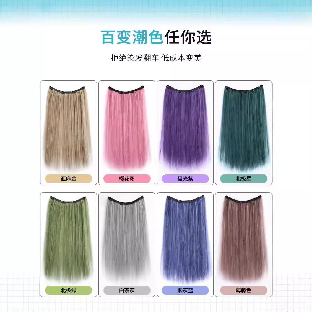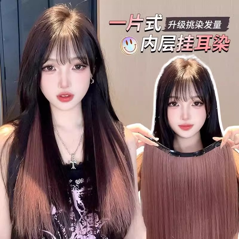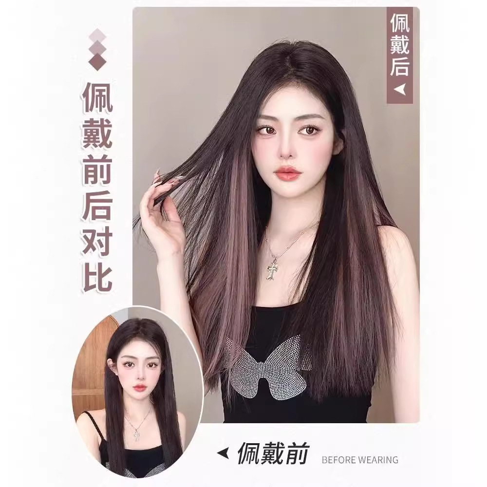 假发女一片式挂耳染长直发挑染彩色多巴胺巴黎画染增发假发接发片