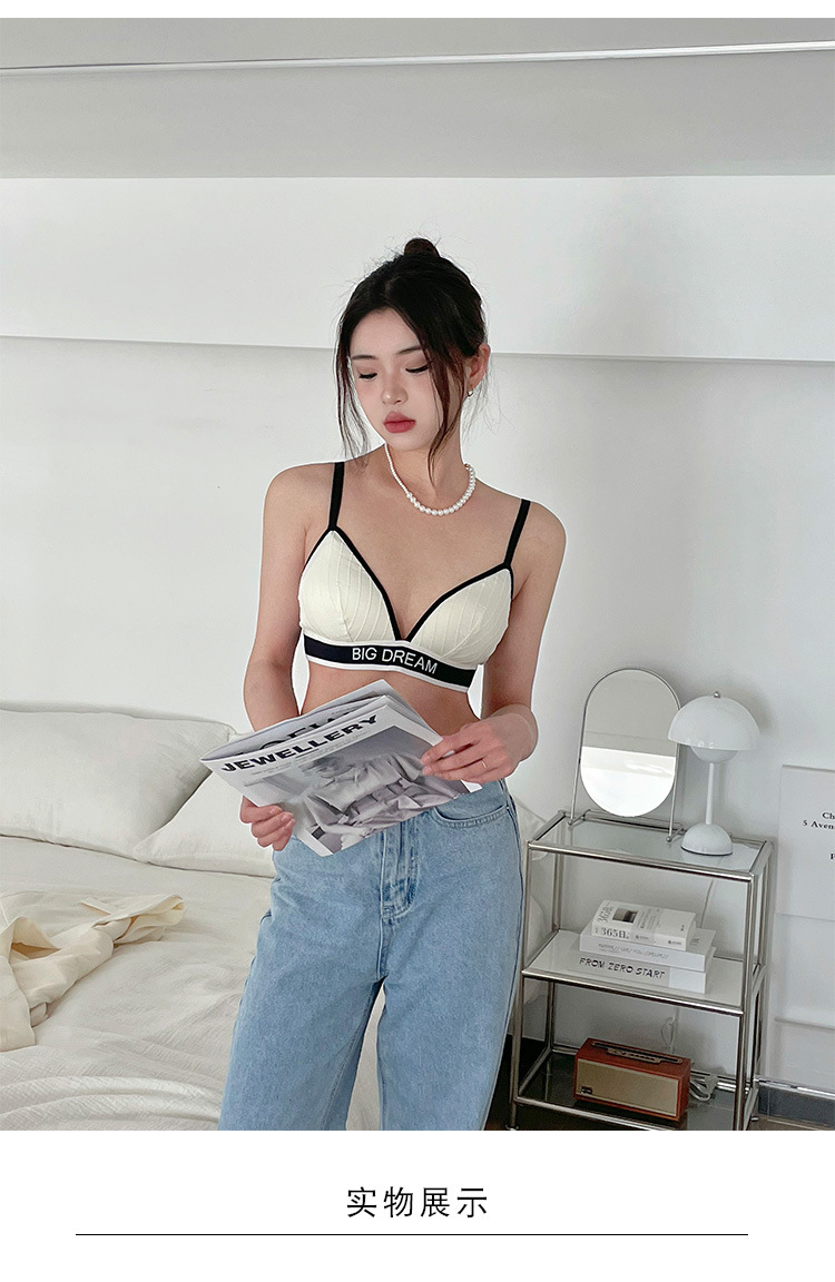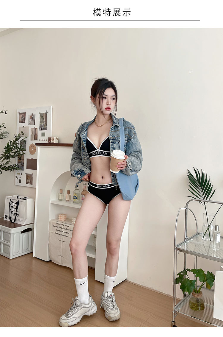 アメリカのレトロなギャル風のアルファベットの広い辺の運動の下着のスーツの外は潮の三角の杯の薄い金の無鋼の輪のブラジャーを着ます。