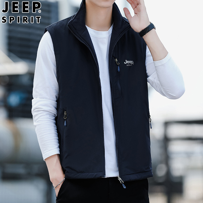 Jeep spirit新型男性ファッションとベルベットの両面に馬甲の大きいサイズの男性釣りのベストコートを着ています