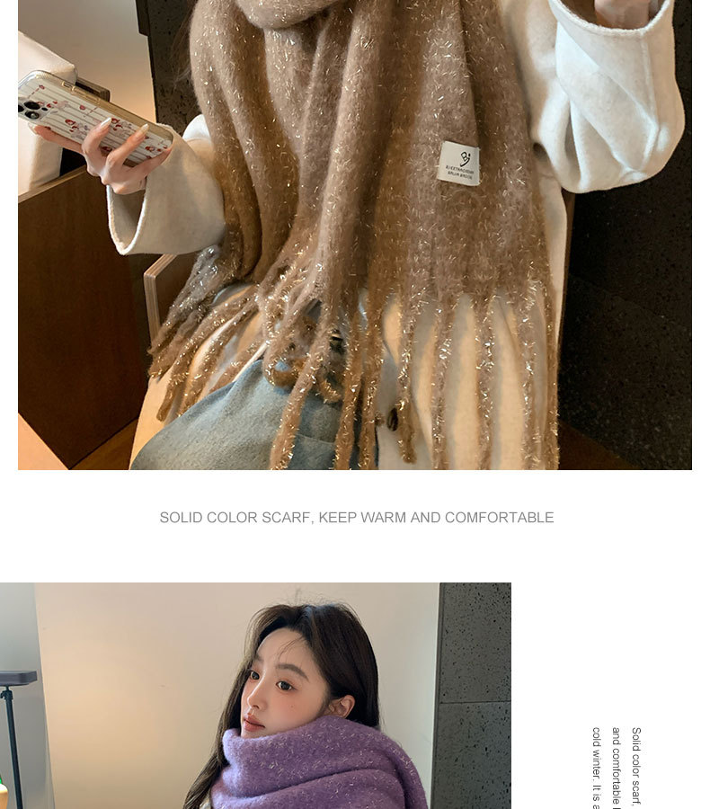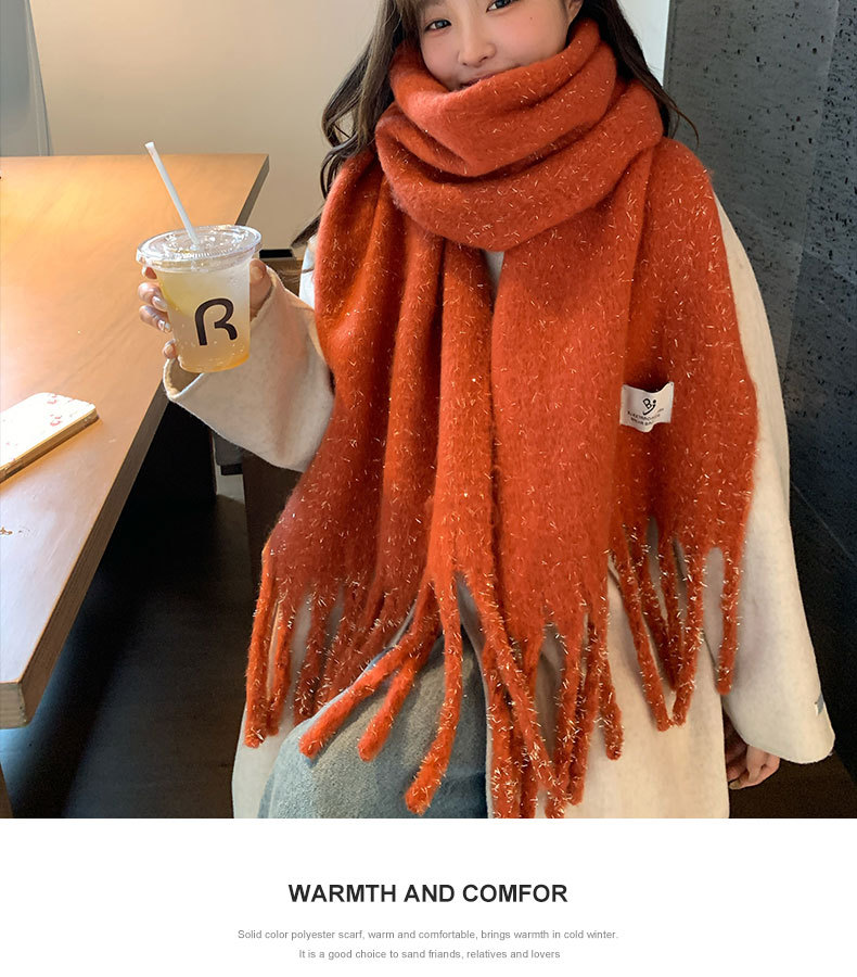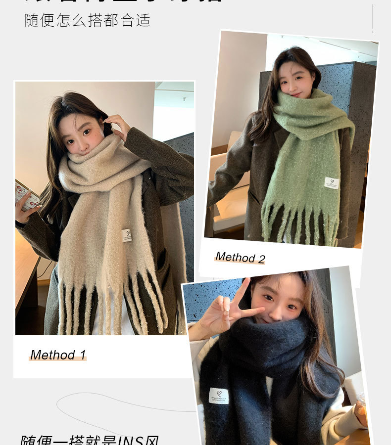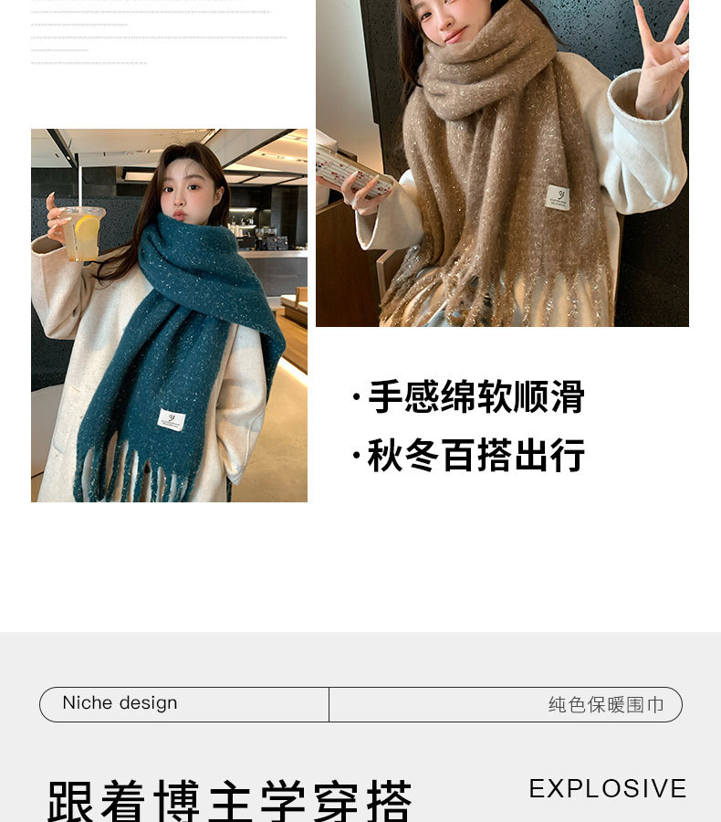 欧米のins秋冬はカシミヤのグラデーションのマフラーの女性の馬海毛の単色の保温のマフラーの高級感をまねます。
