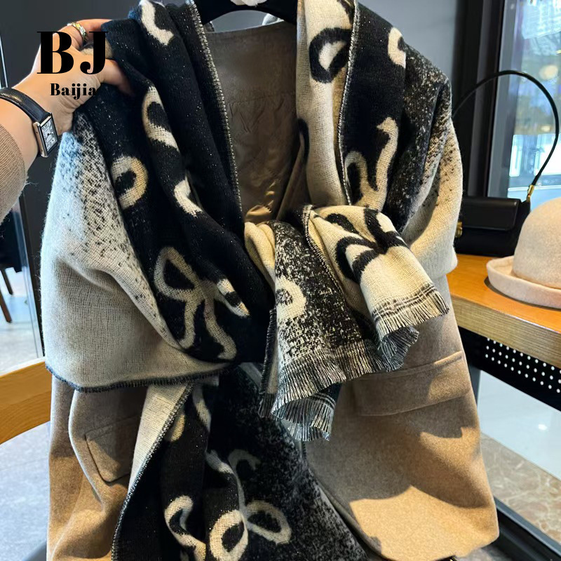 韩版蝴蝶结高级感双面仿羊绒围巾女 2025冬季ins百搭披肩加厚围巾