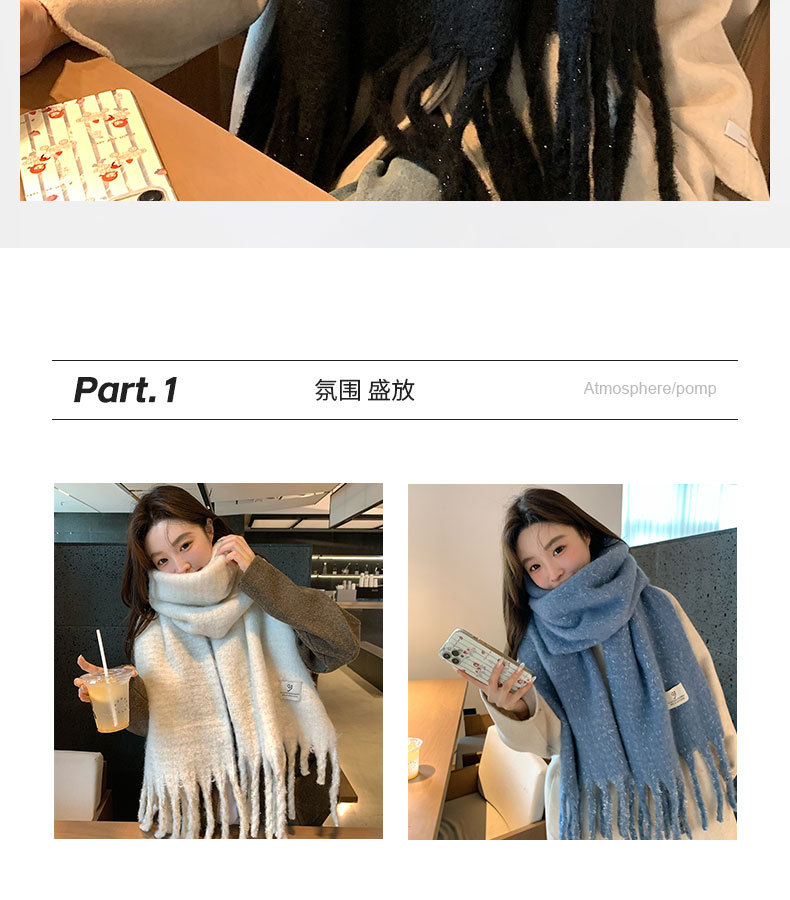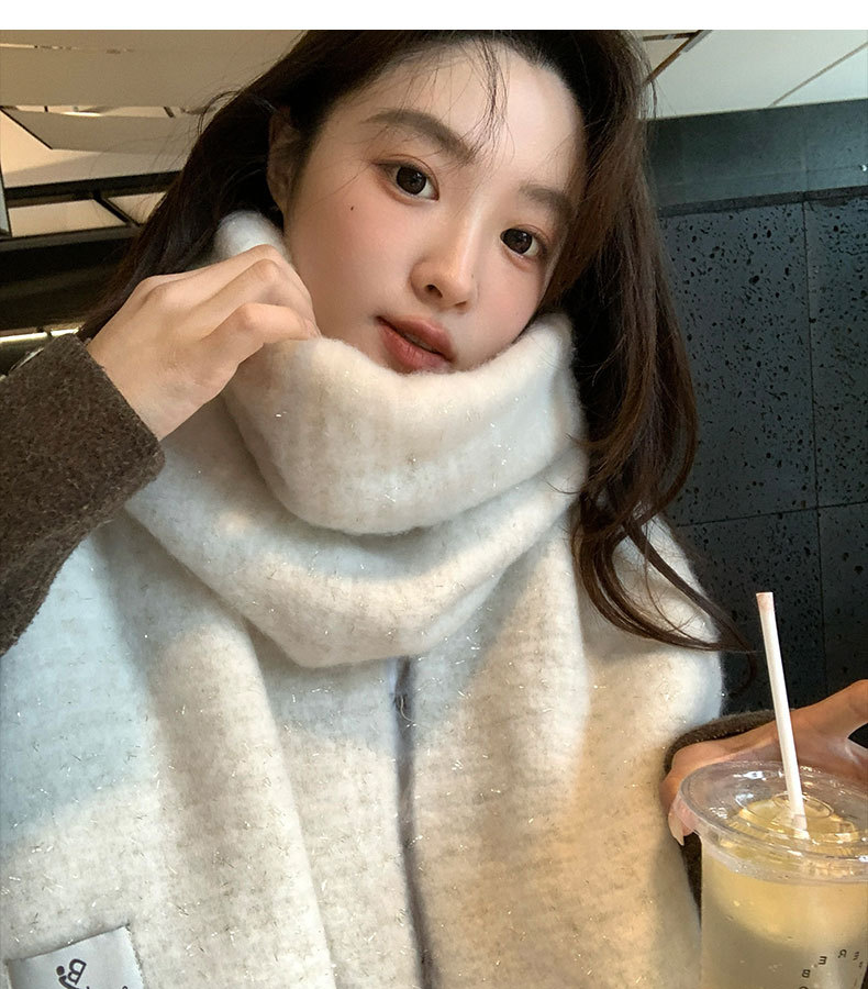 厚い白いマフラーはカシミヤのようです。冬は高級感があります。