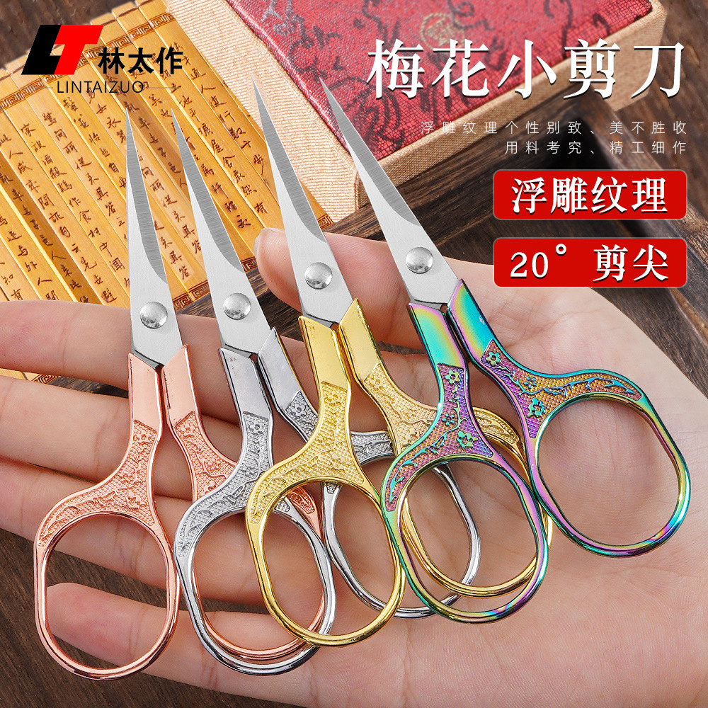 梅の花の茶の小さいはさみの金色の合金のグリップの手作りの刺繍の切り紙のはさみの復古の模様の浮き彫りの小さい切り子