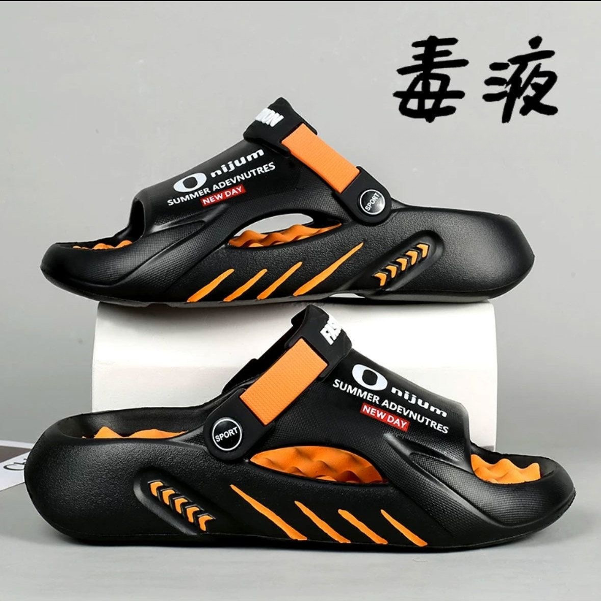 厚底外穿双色凉拖鞋男凉鞋男洞洞鞋男士EVA拖鞋一字拖户外沙滩鞋