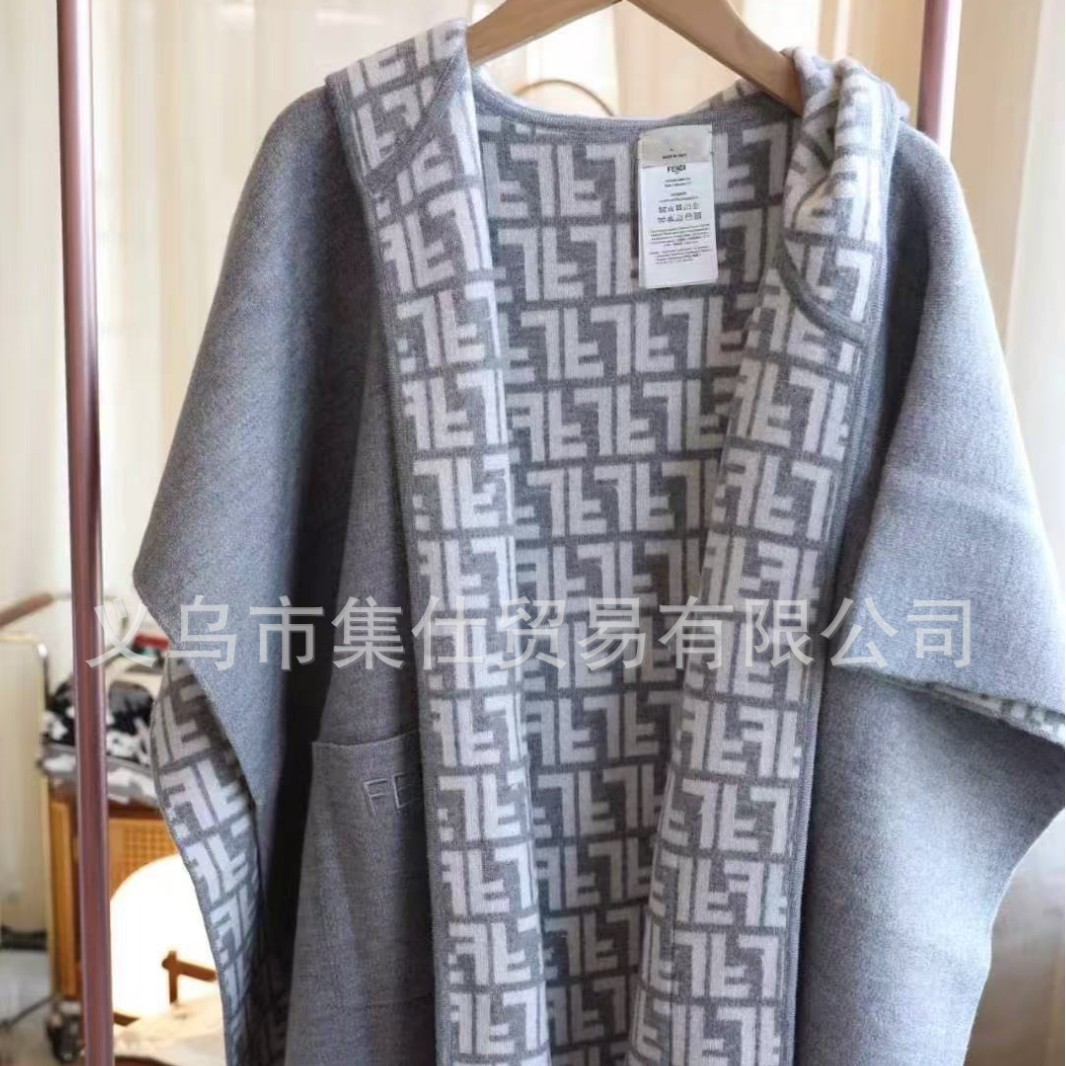 网红爆冬款韩版经典FF带帽保暖羊绒外搭多用披风披肩斗篷