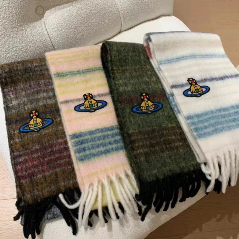 明星同款西太后条纹复古马海毛刺绣围巾女高级感冬季加厚保暖围脖