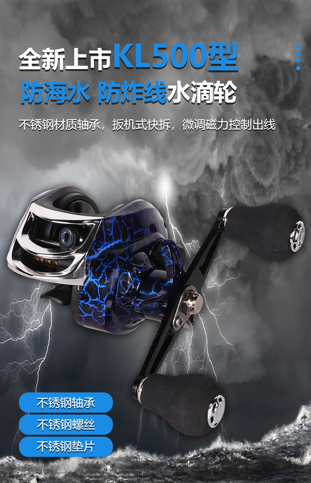 新型クロスボーダー防爆線水滴輪黒防海水路亜漁船全金属水滴輪路亜漁具