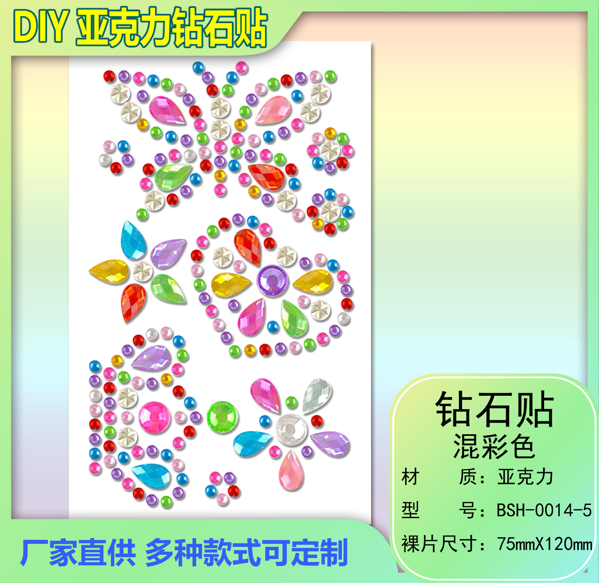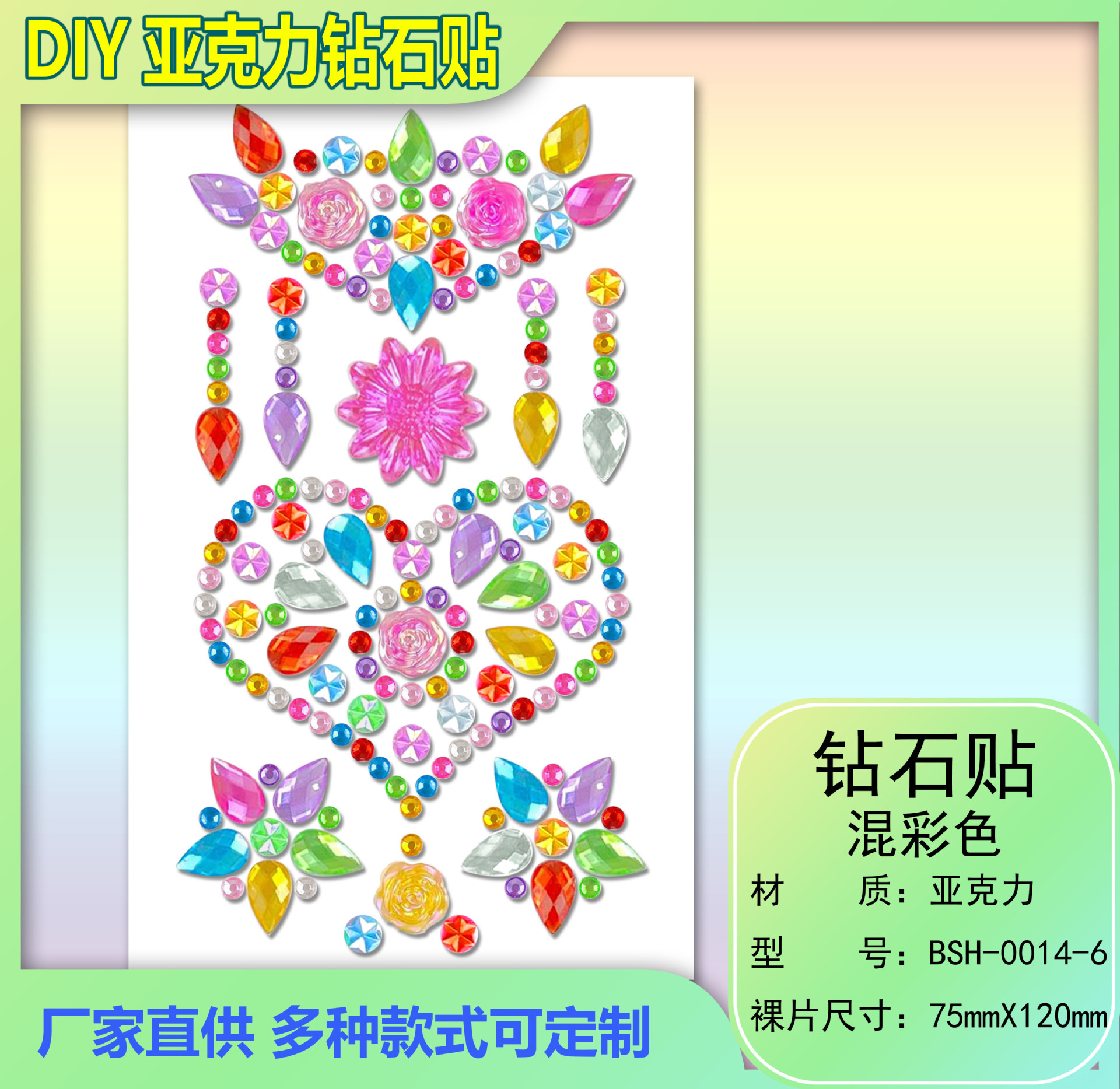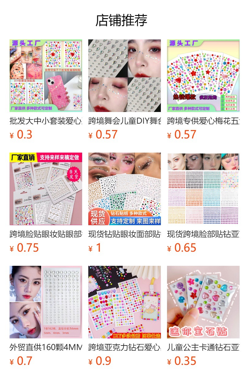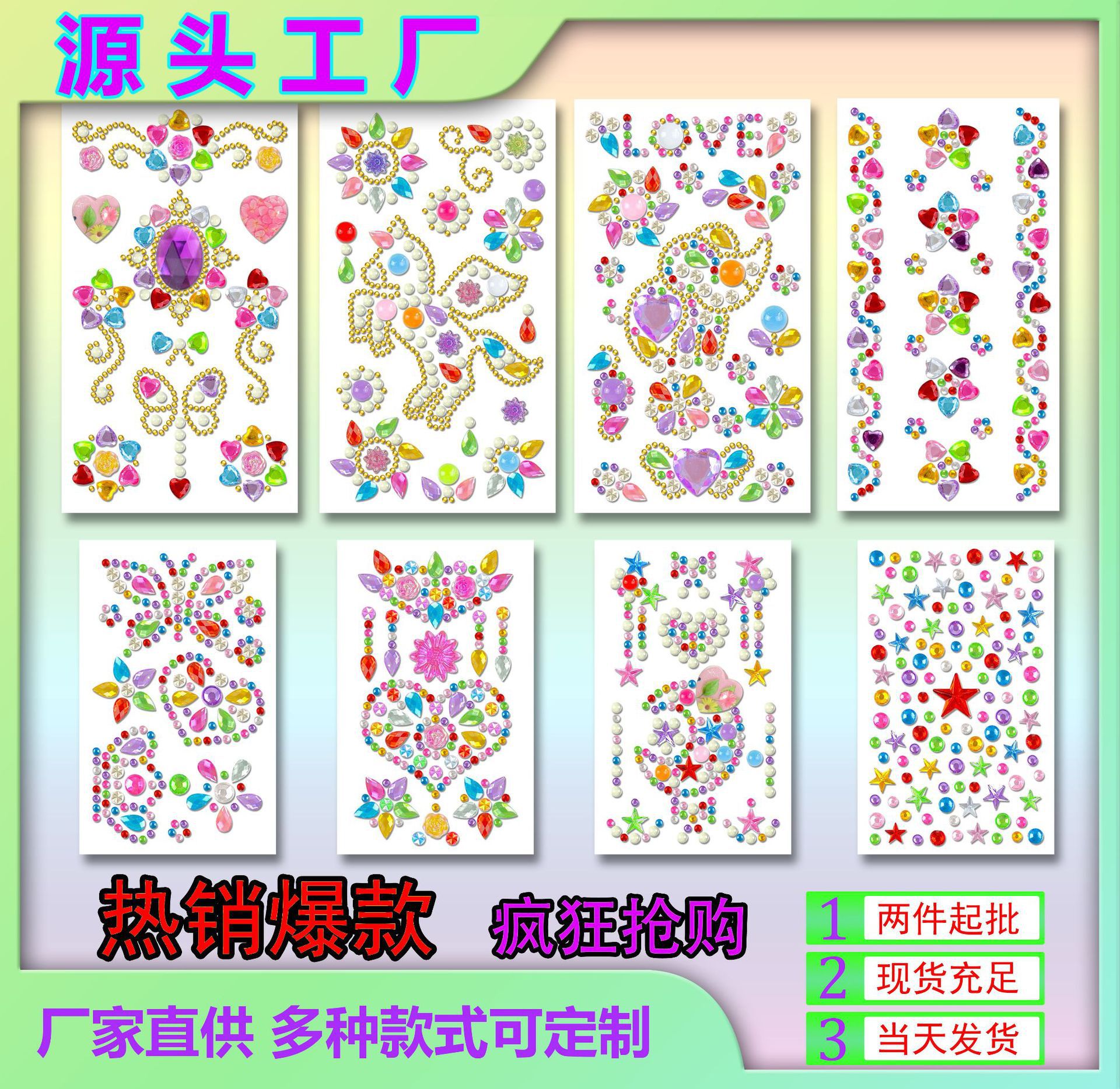6MM260 メーカークロスボーダーカラーダイヤモンドステッカーカラーダイヤモンドステッカー立体装飾ラインストーンステッカー子供の宝石ステッカー