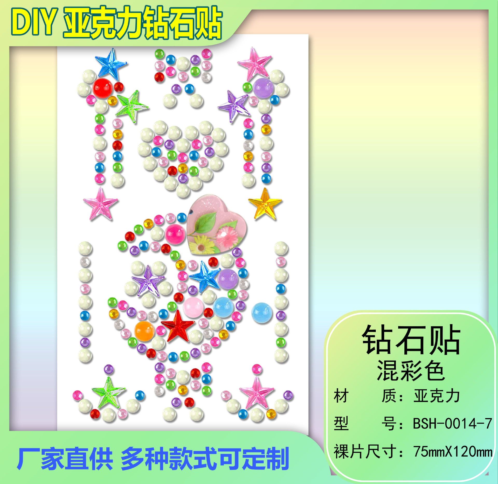 クロスボーダーアクリルダイヤモンド愛星ステッカー子供DIYパーティーアルバム携帯電話水カップ水晶ドリルステッカー