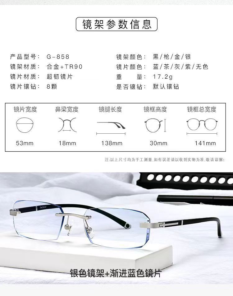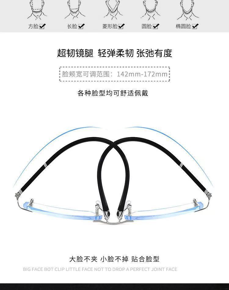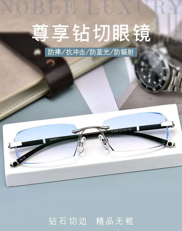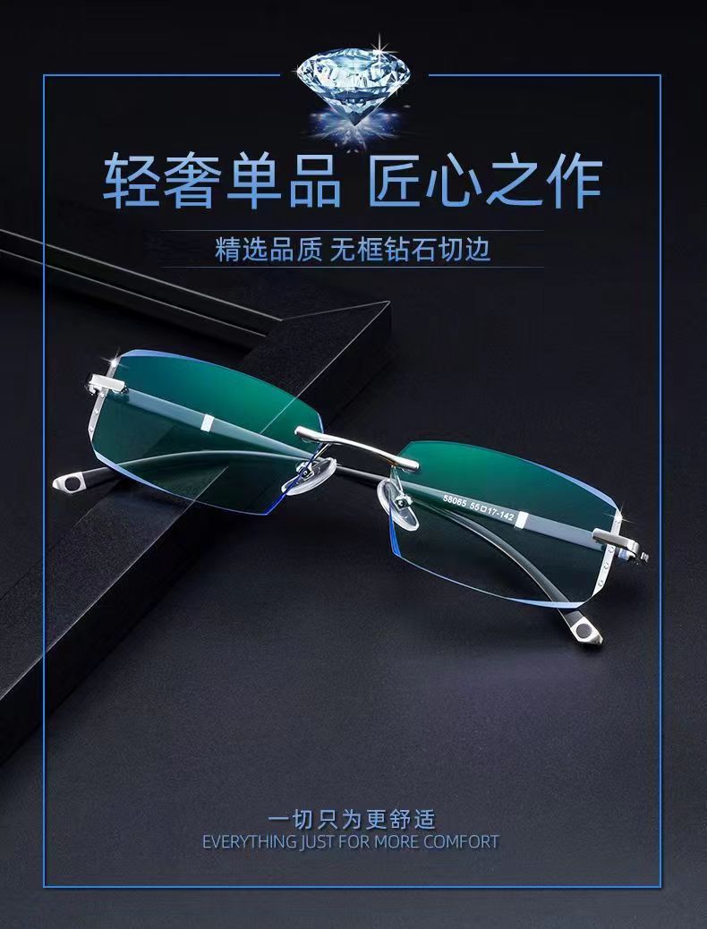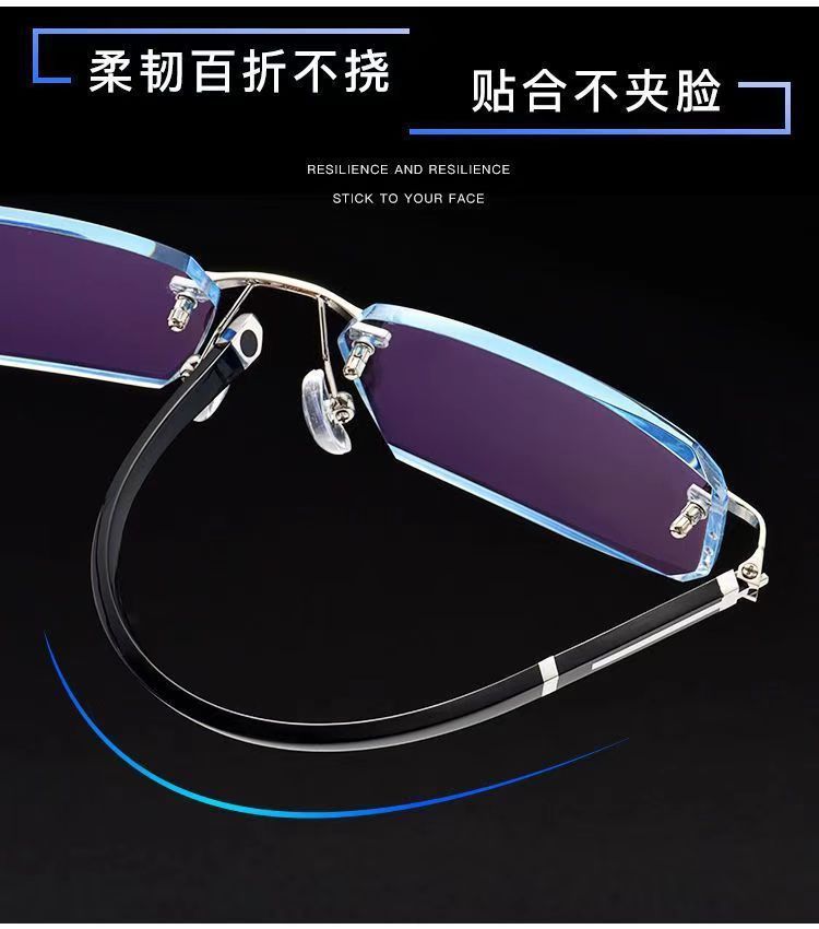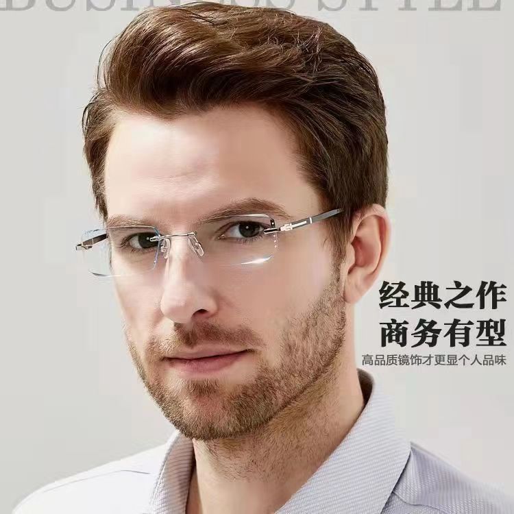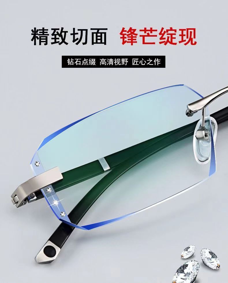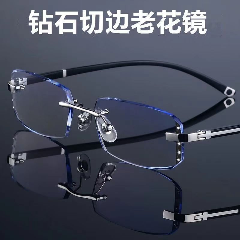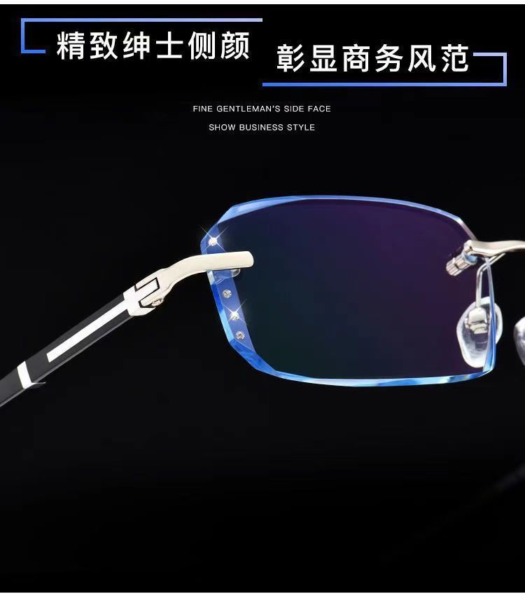 新型の高級な縁なしの男性のブルーレイ防止老眼鏡ファッションビジネスの個性はダイヤモンドを入れて放射線を防止します。