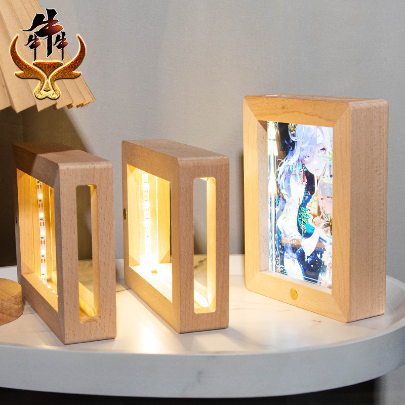 实木相框木质摆件灯饰发光底座led小夜灯万圣节圣诞节伴手礼礼品