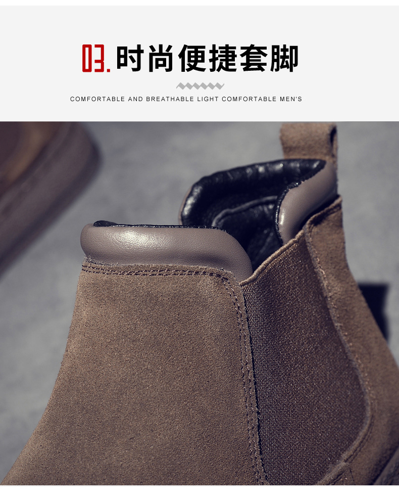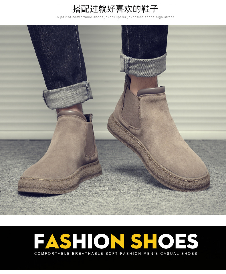 潮男はショートブーツの新型青少年を踏んで快適に砂の皮を磨いています。