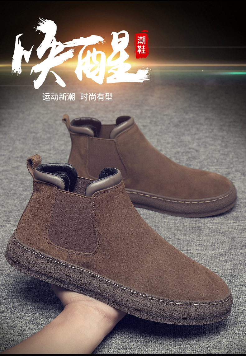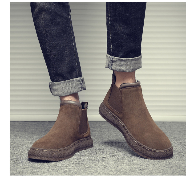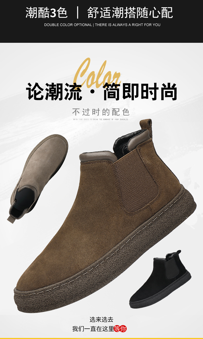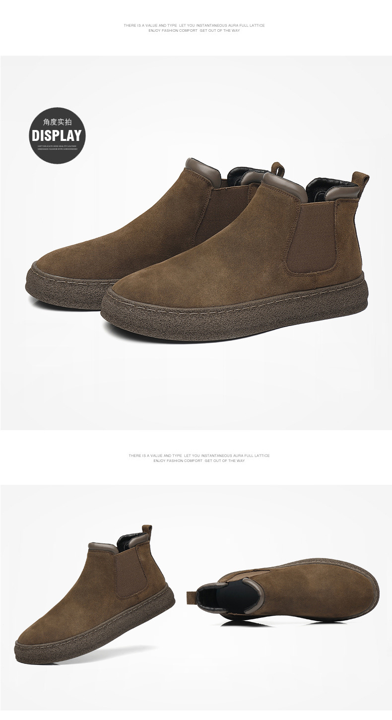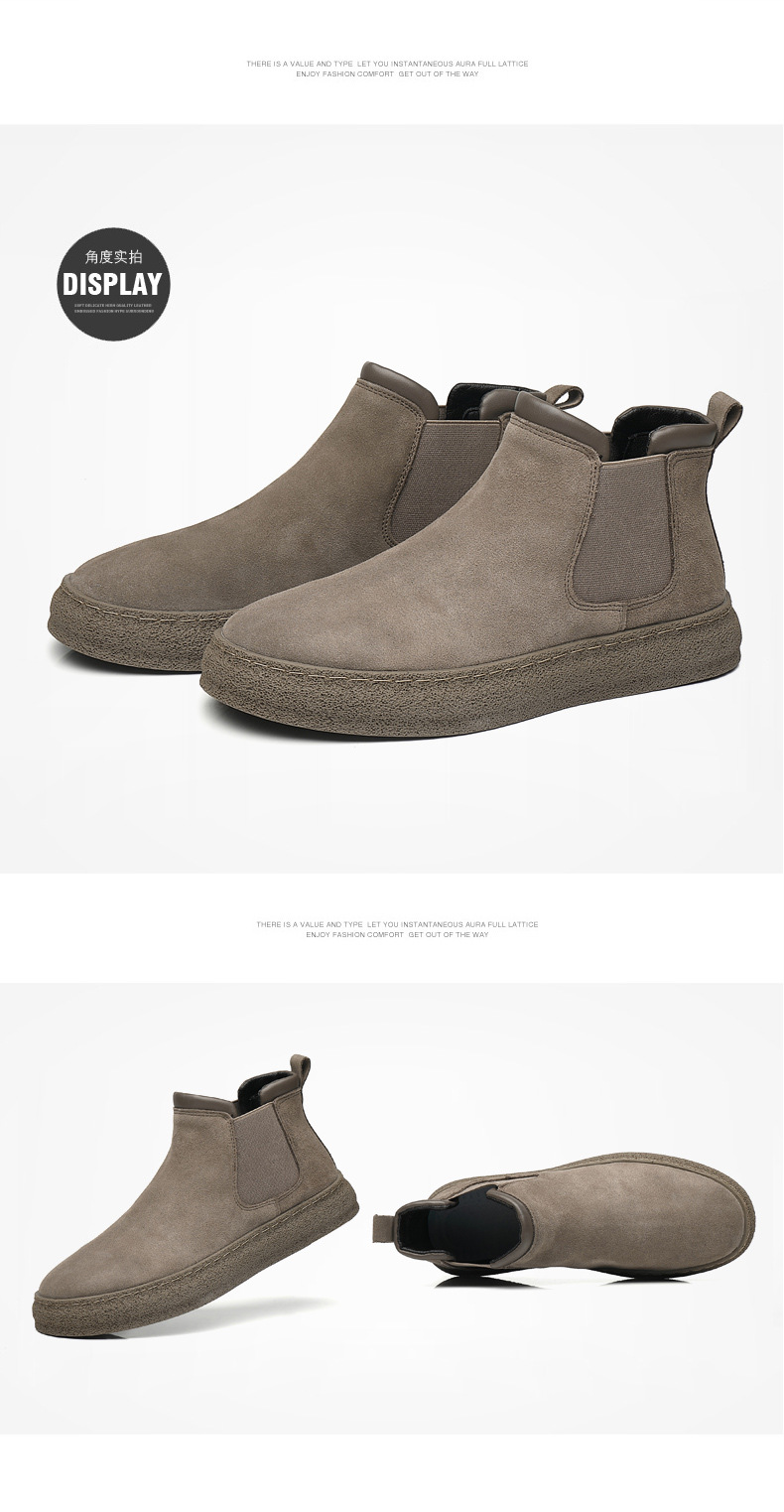 一复古脚蹬短靴高帮男款靴靴百搭2025纯色靴厚底马丁切尔西男新款