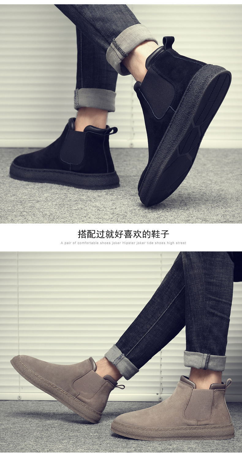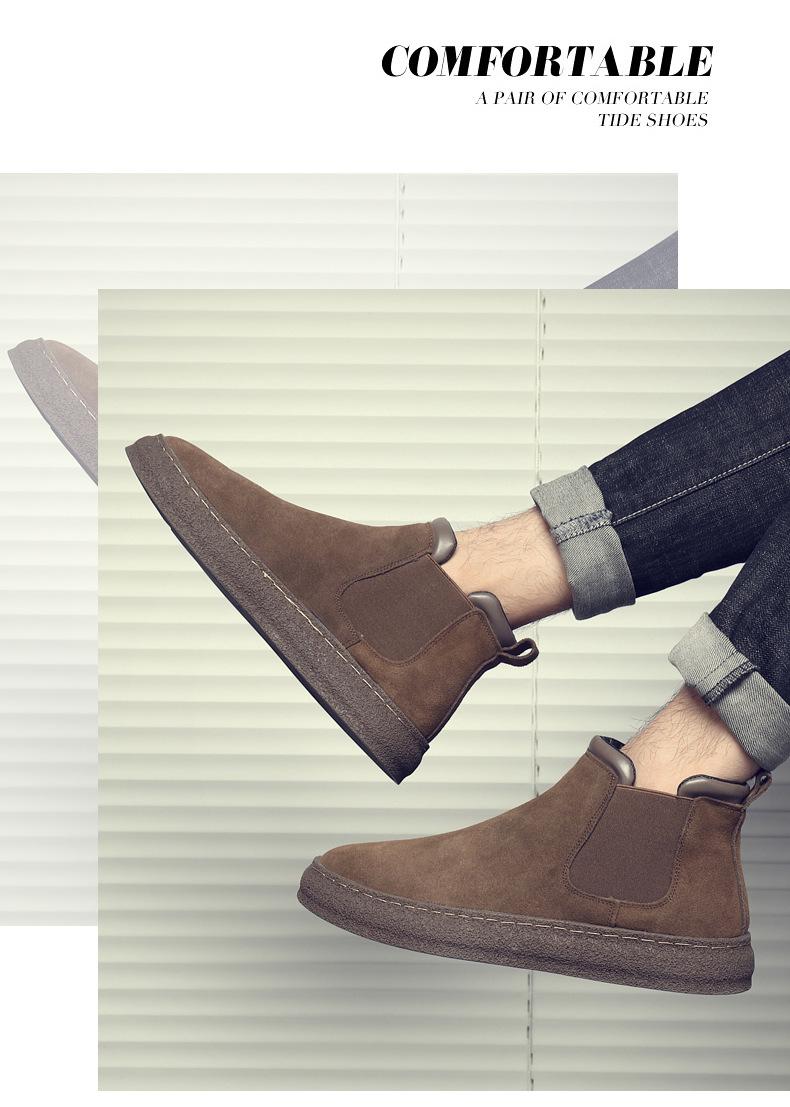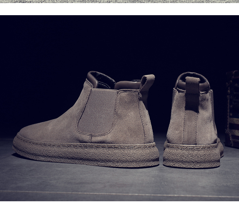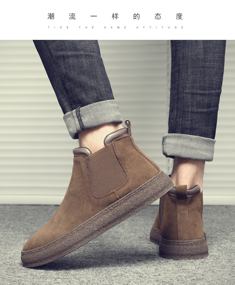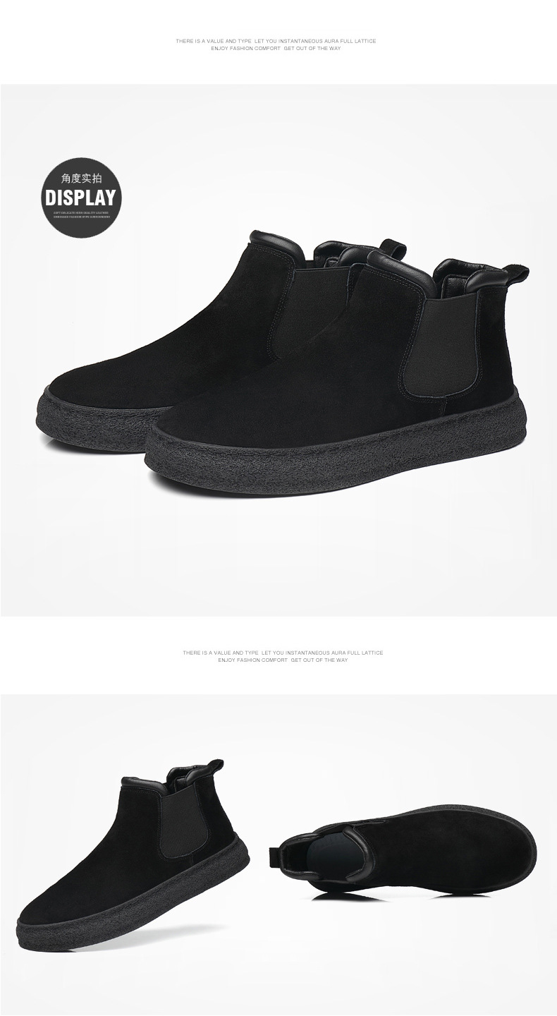 一复古脚蹬短靴高帮男款靴靴百搭2025纯色靴厚底马丁切尔西男新款
