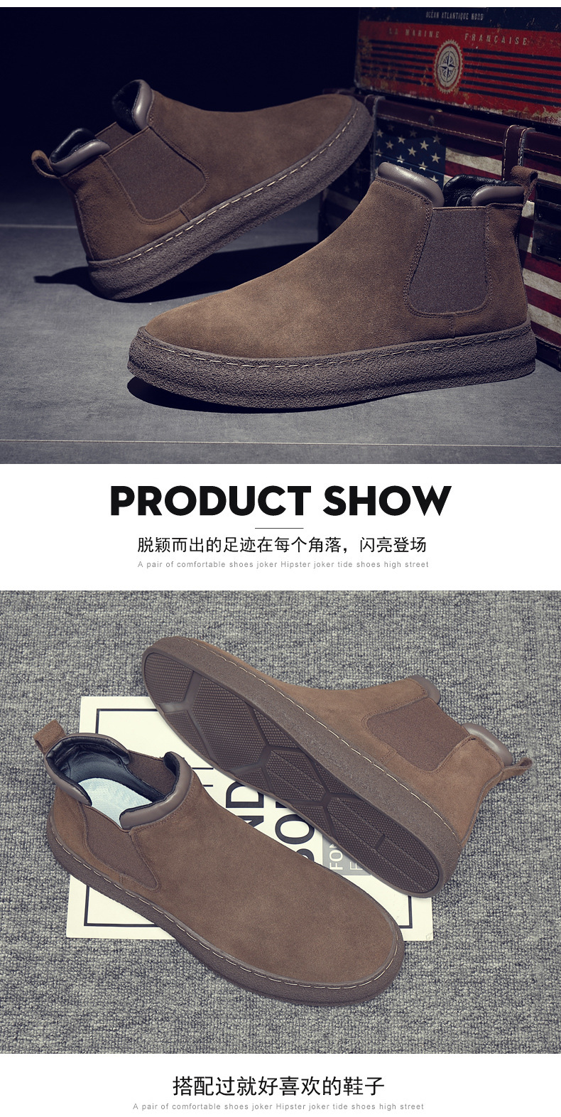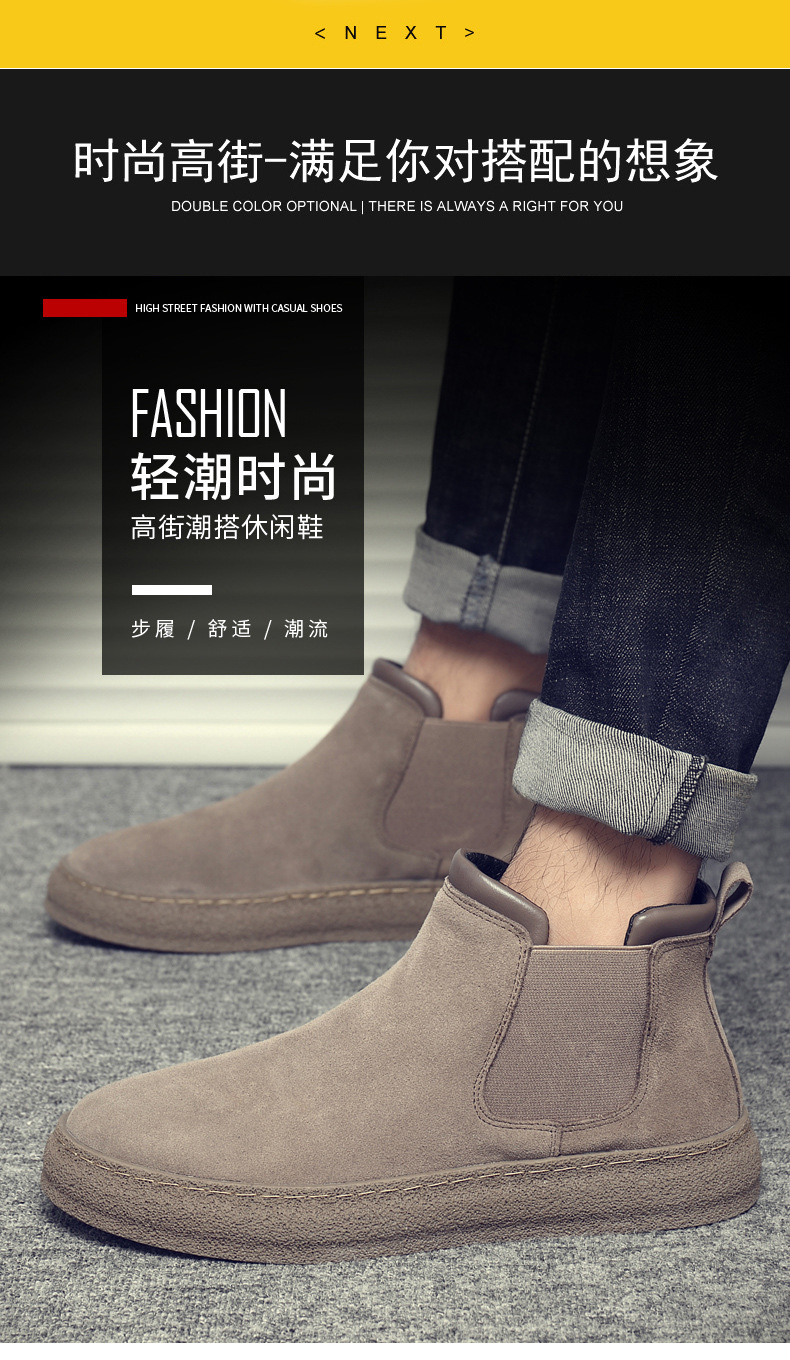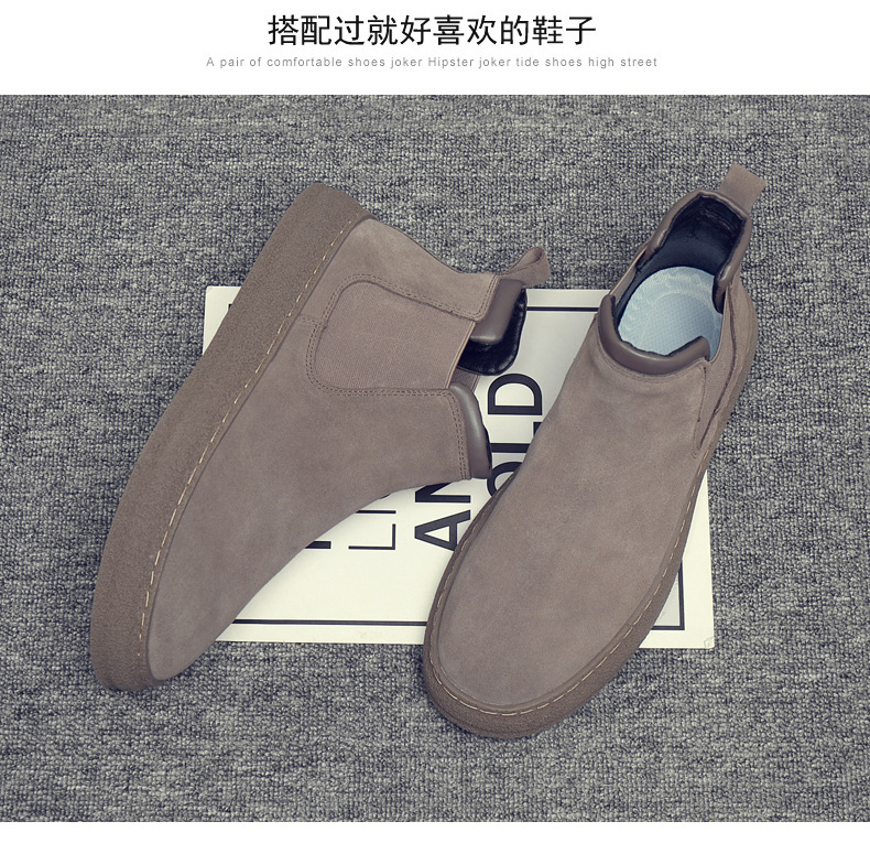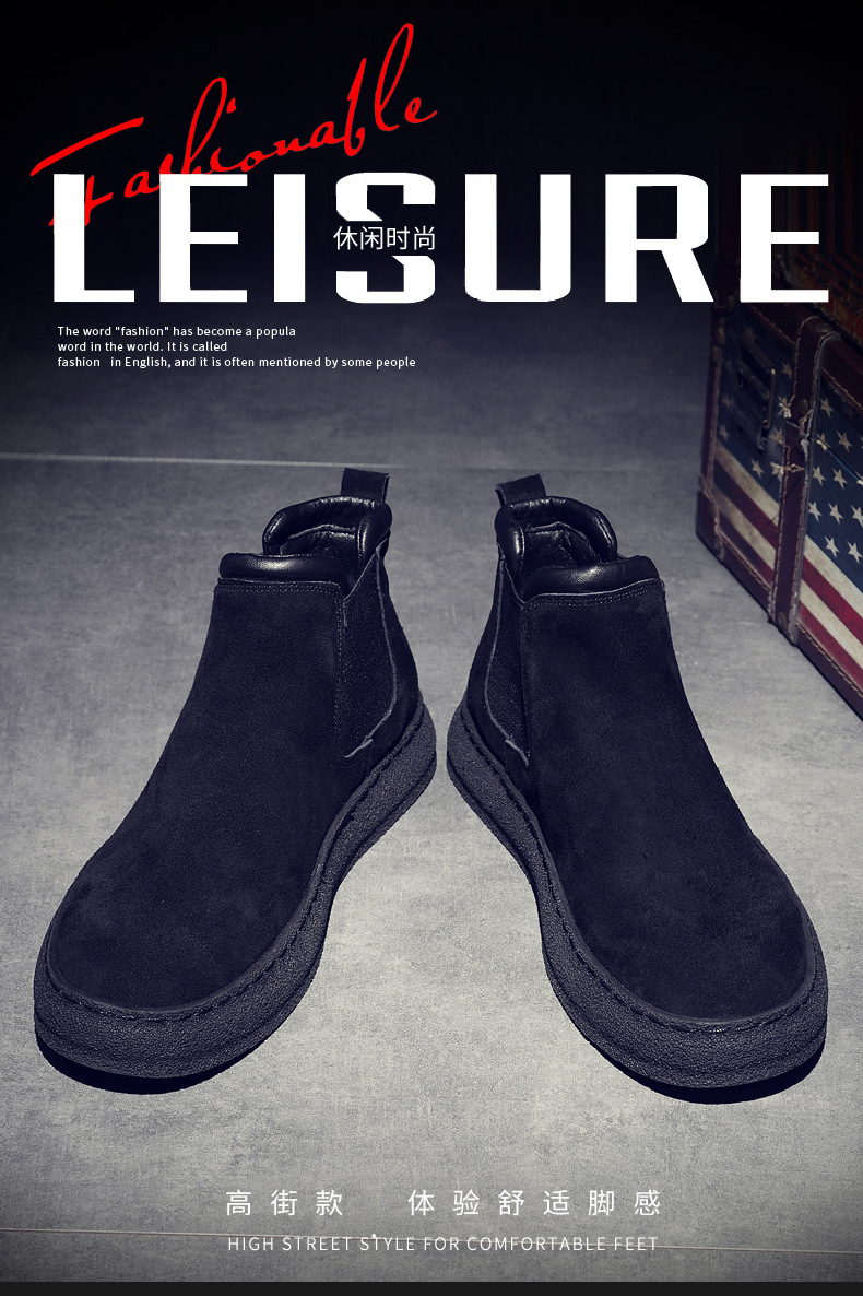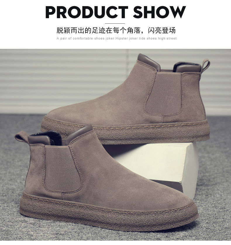 一复古脚蹬短靴高帮男款靴靴百搭2025纯色靴厚底马丁切尔西男新款