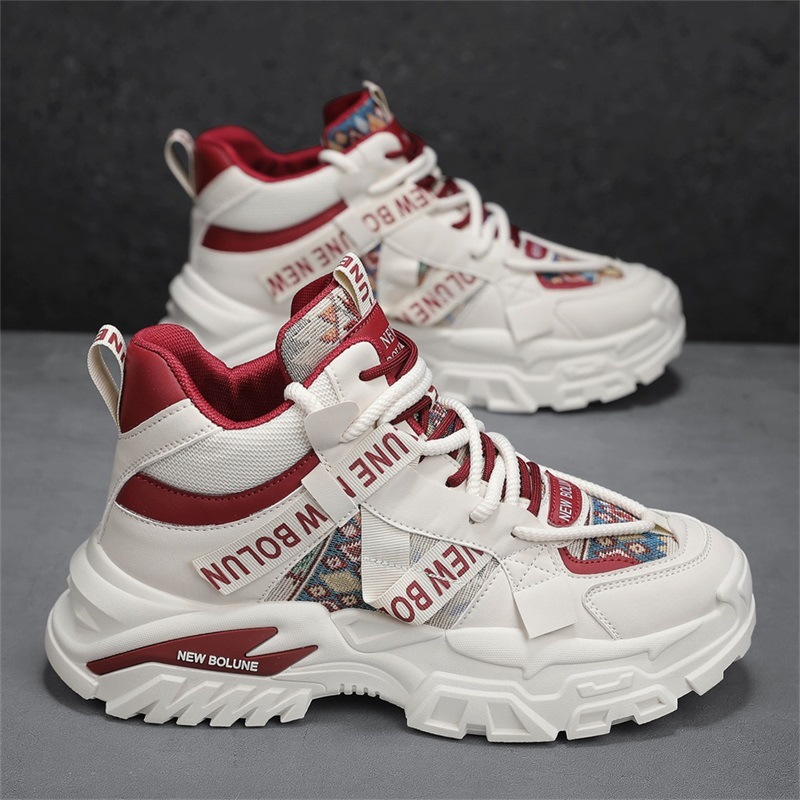 メンズシューズ2024新作秋物防臭ネット厚い底おやじ靴ネット赤百合カジュアルスポーツ高級感ファッションシューズ