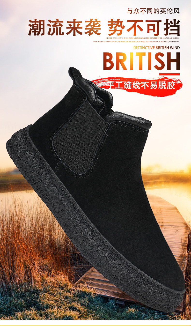 马丁靴秋季高帮男鞋英伦风切尔西靴工装鞋冬季加绒中筒鞋子皮靴男