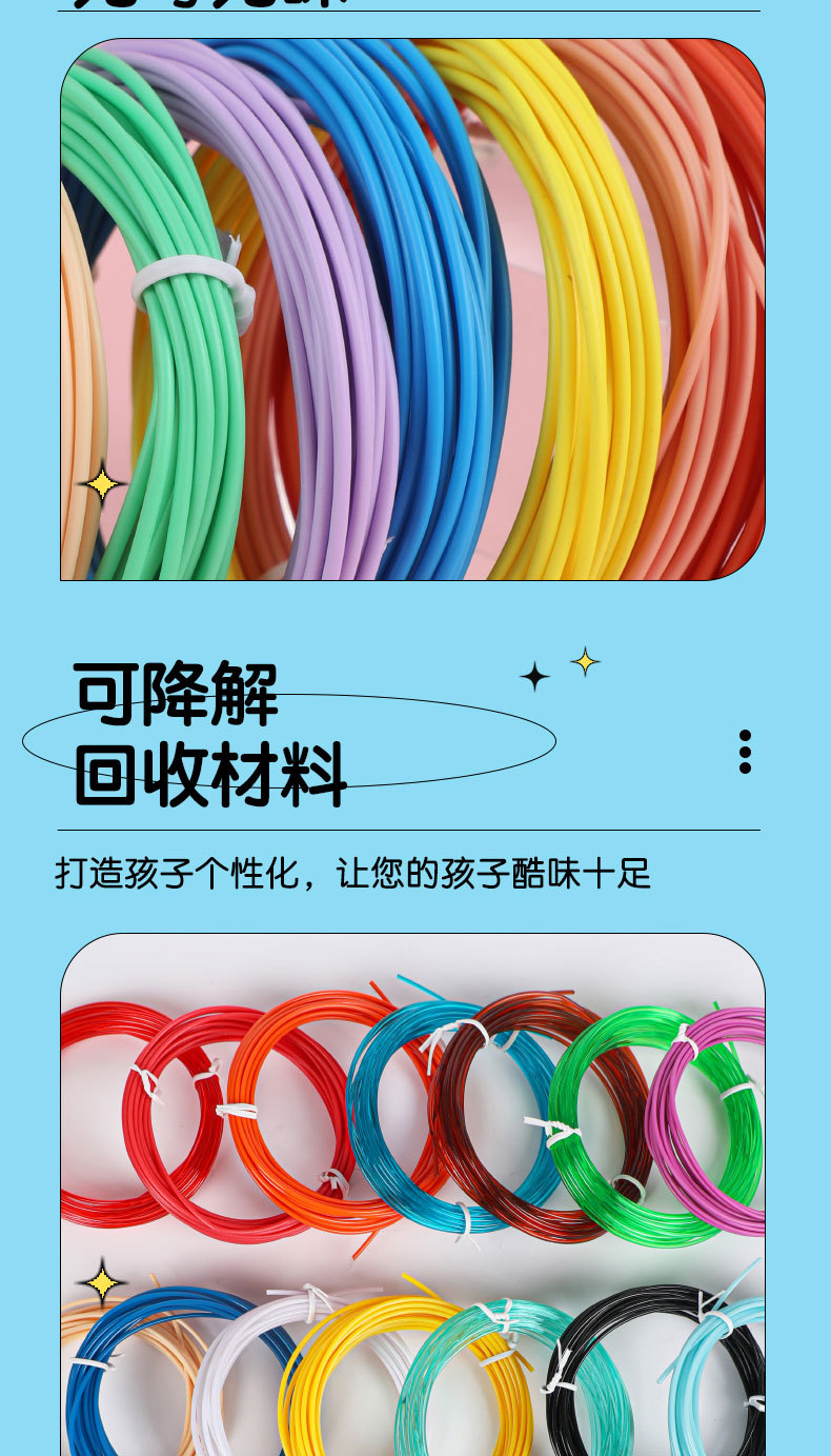 3d印刷ペン消耗品100メートル低温立体絵画ペン子供落書きブラシ材料印刷コイル20色