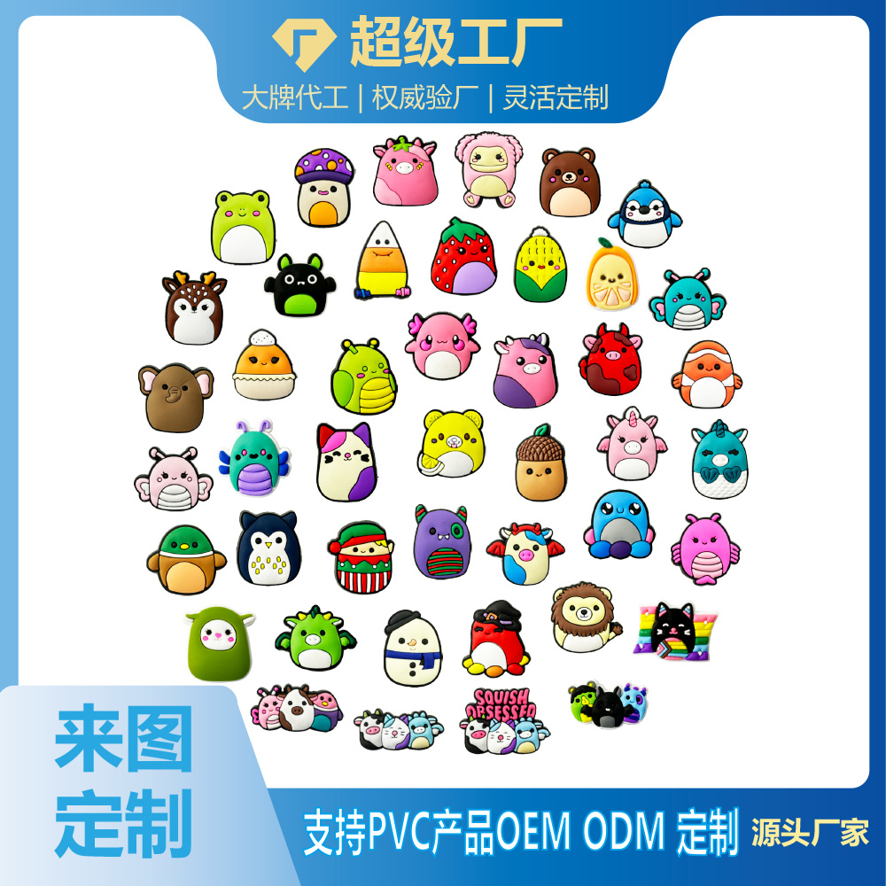 60種類のかわいい靴飾りアクセサリー、PVC製ソフトゴム素材のシューバックル、DIY対応、穴あき靴用アクセサリーをメーカー卸売