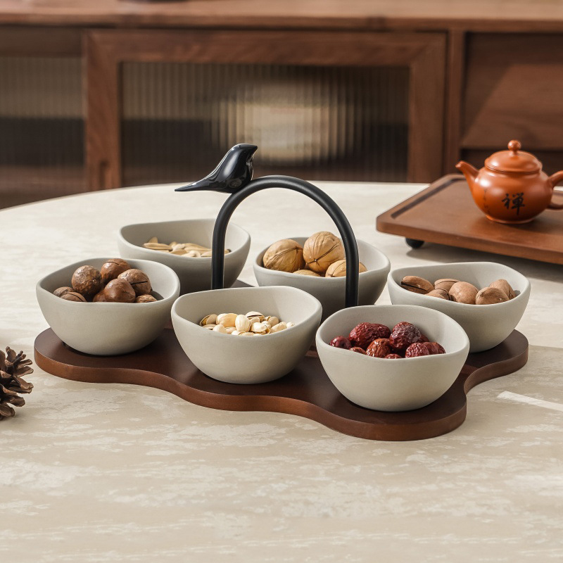 跨境粗陶分格小吃碟家用客厅茶几陶瓷干果盘 茶点坚果蛋碗水果盘