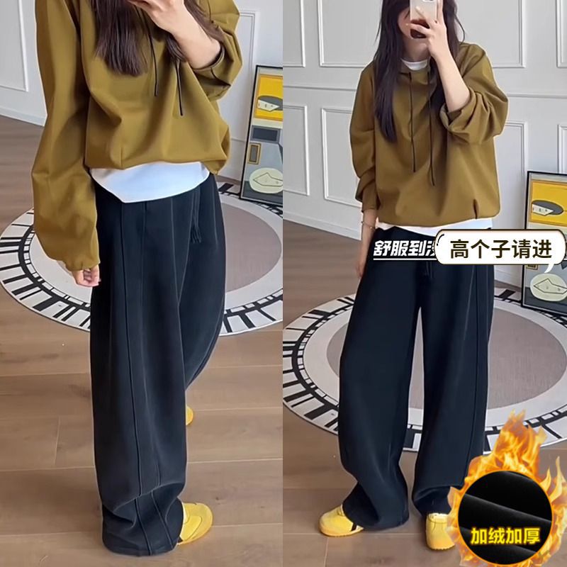 180背の高いロングバージョンのカジュアルなストレートパンツの女性秋冬とベルベットの黒いスポーツパンツ175超ロングレギンス