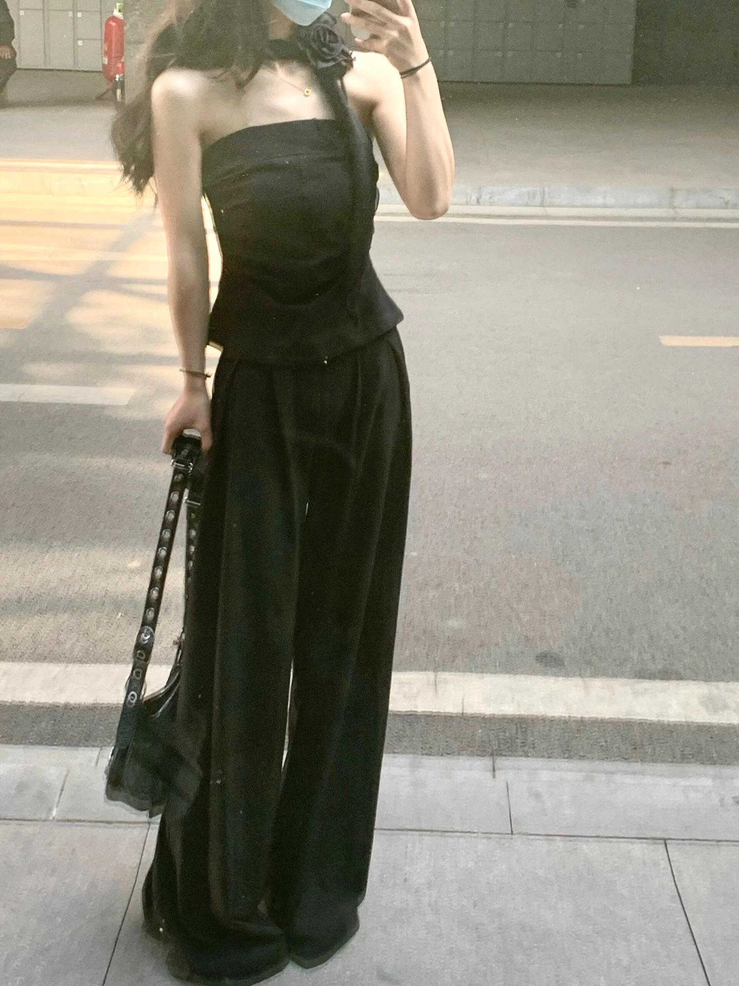 175背の高い超長版180黒のスーツのカジュアルなズボンの女性の夏の高腰のゆったりしている感じの広足のモップのズボン