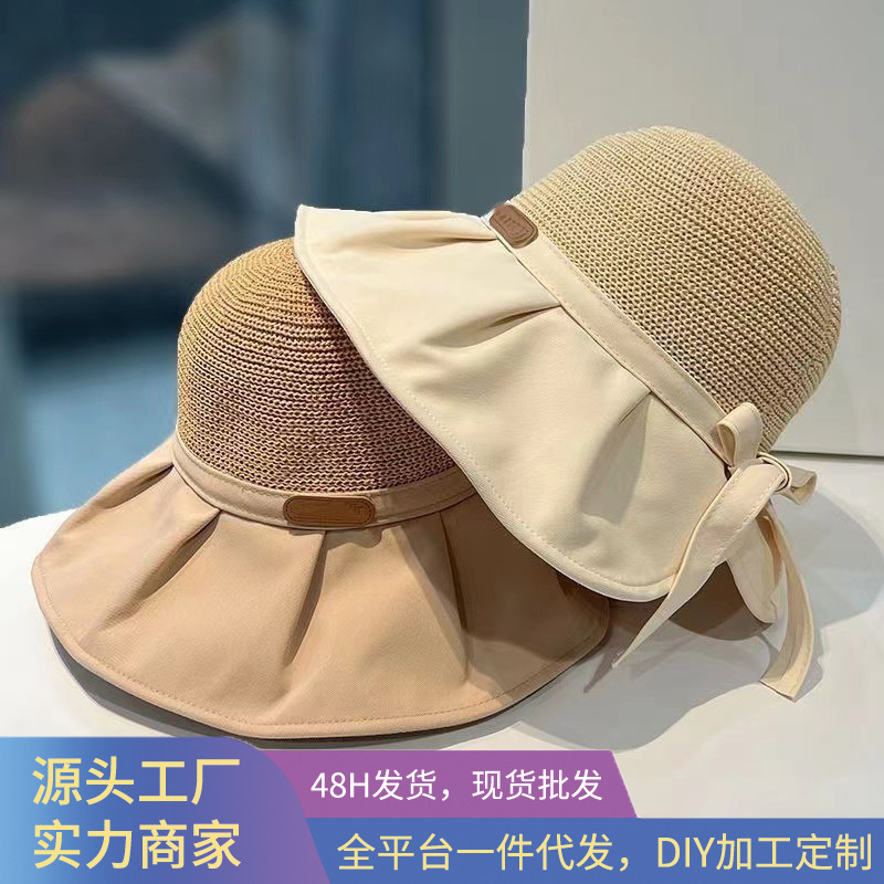 新型夏は屋外の日除け帽の大きなつばの漁師帽を組み合わせて携帯して日焼け止めの日よけの帽子の蝶結びの女性の帽子を使います。