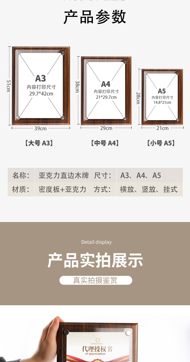 胡桃木メダルアクリル授権牌栄誉証書枠a a5木製メダルフォトフレーム営業許可証振り子台
