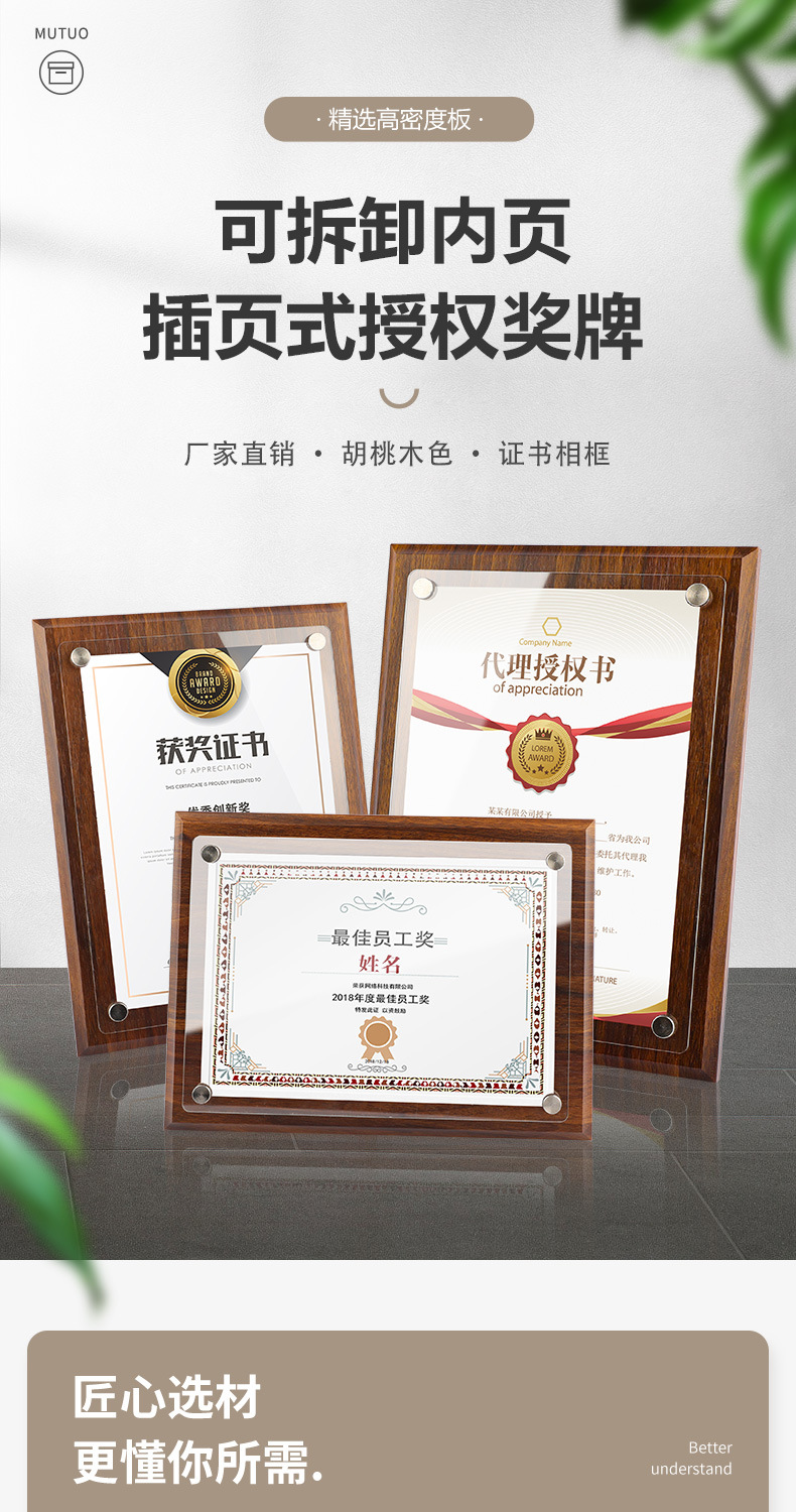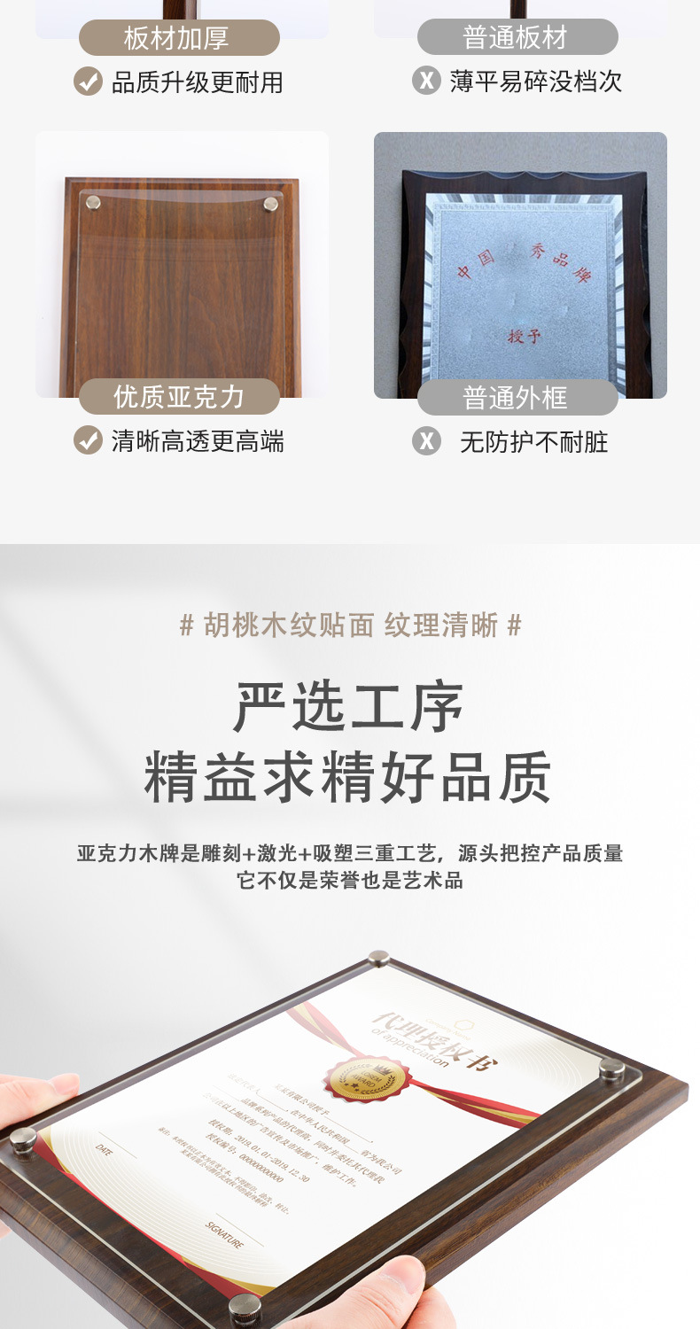 厂家批发木质奖牌制作创意荣誉证书颁奖企业加盟牌实木奖牌授权牌