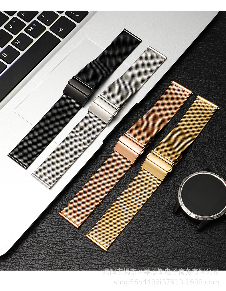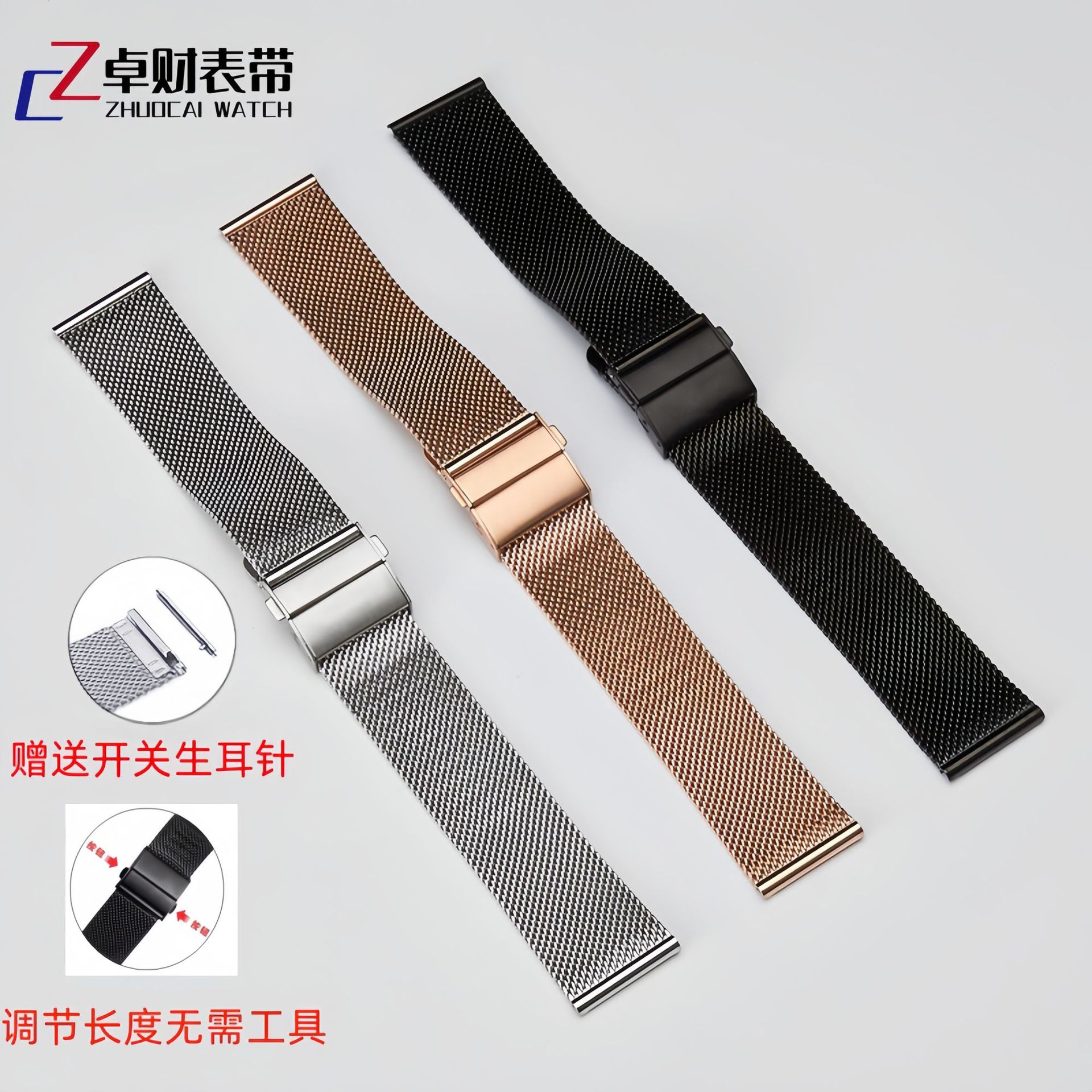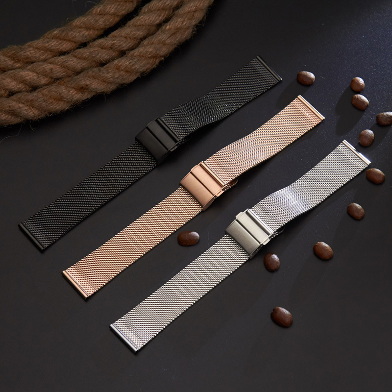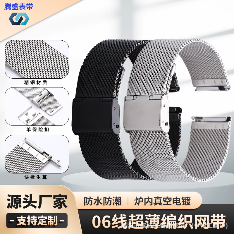 手表表带表链精钢304不锈钢米兰尼斯编织网带06线单保扣配件通用