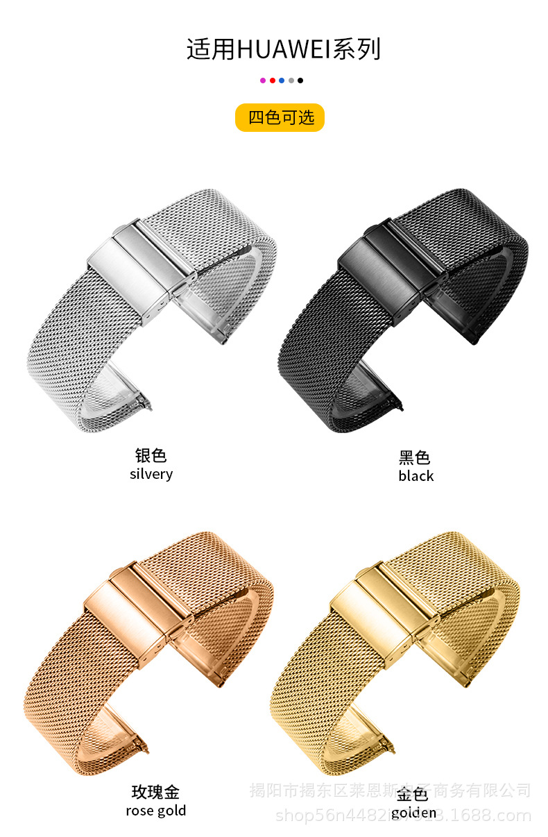 国境を越えた新作、Apple iWatch対応、ステンレス製ダブルスナップミラネーゼバンド、Huawei GT5にも対応