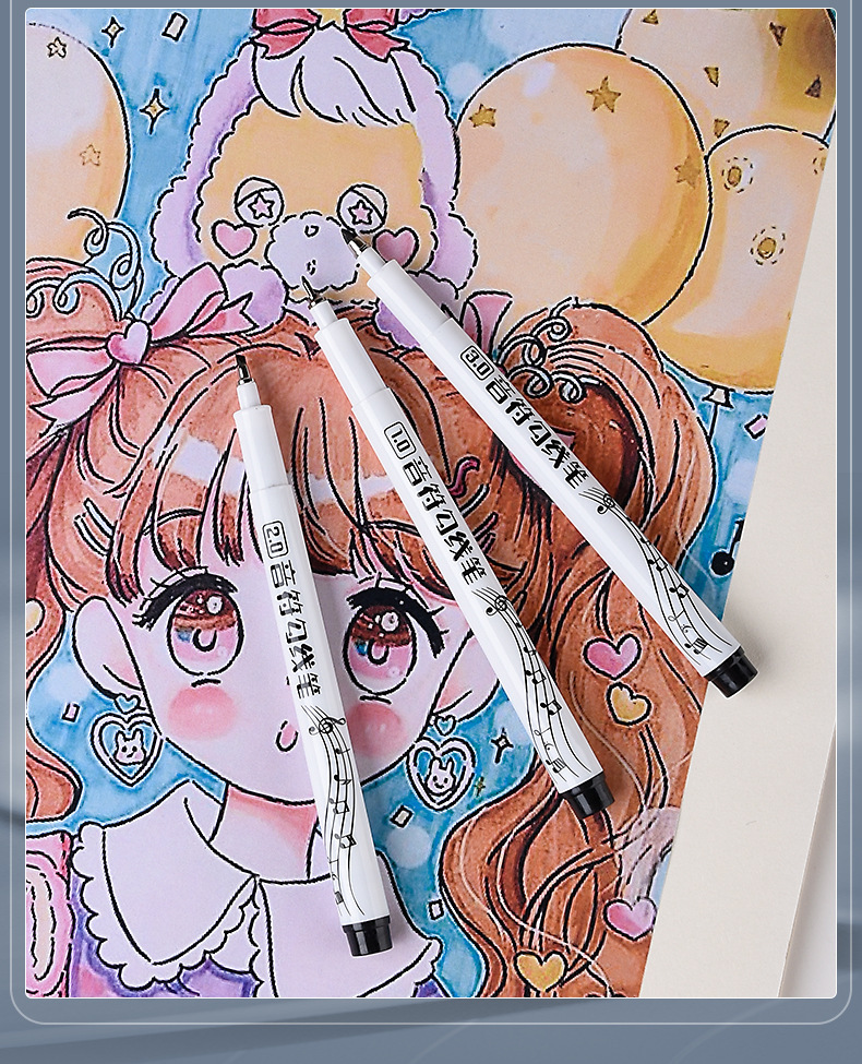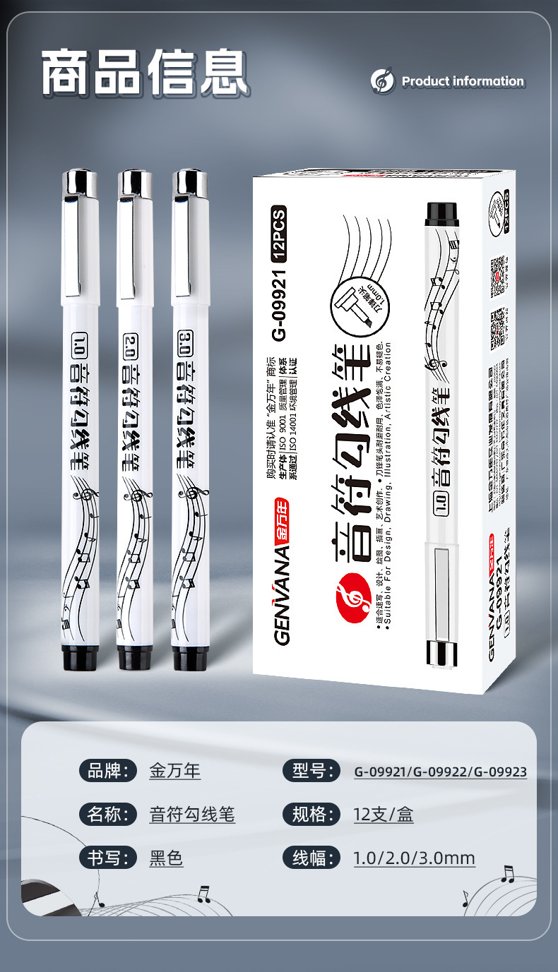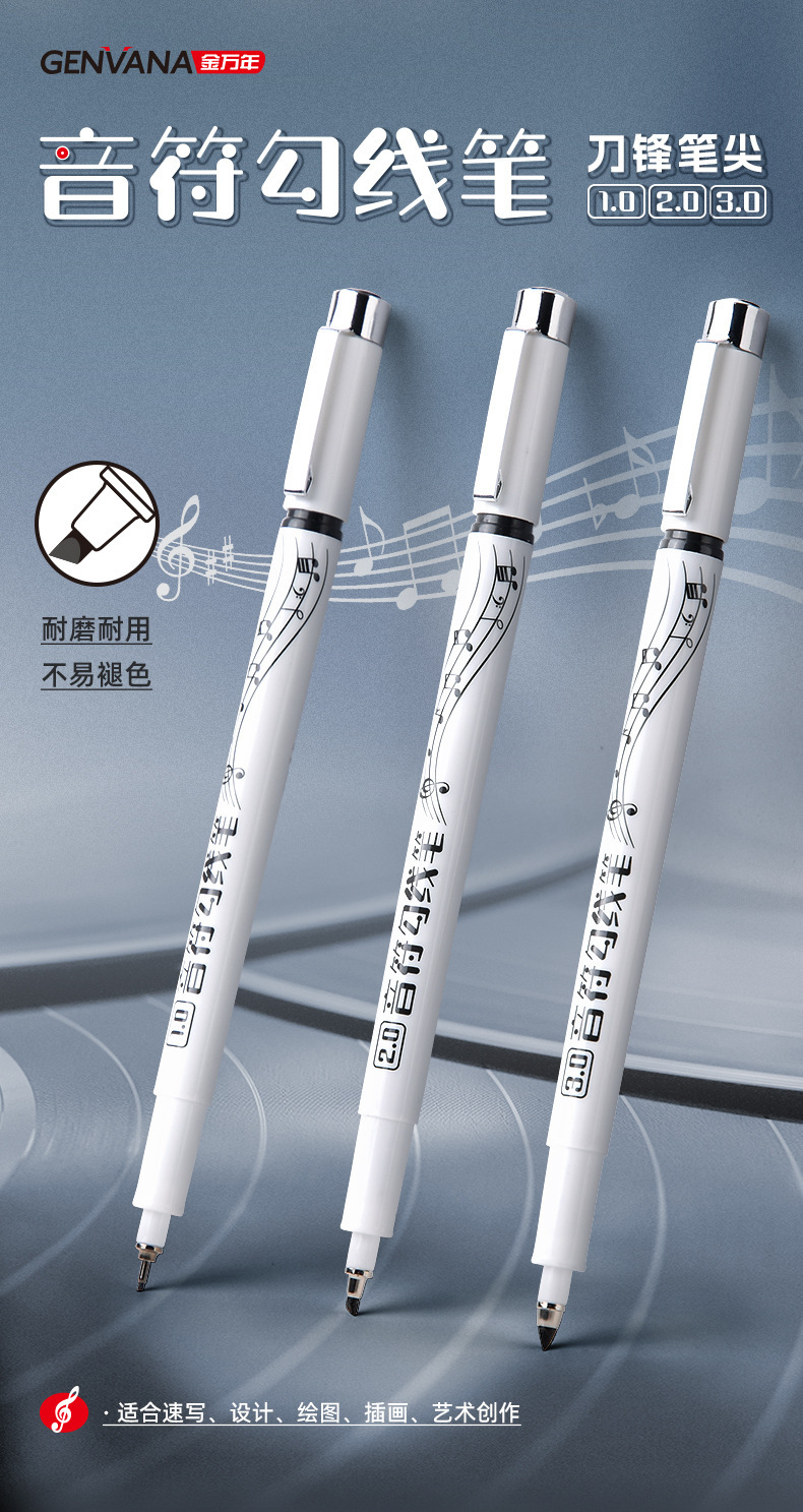 金万年音符シリーズ線筆1/2/3mm防水斜頭線手描き美術漫画絵筆